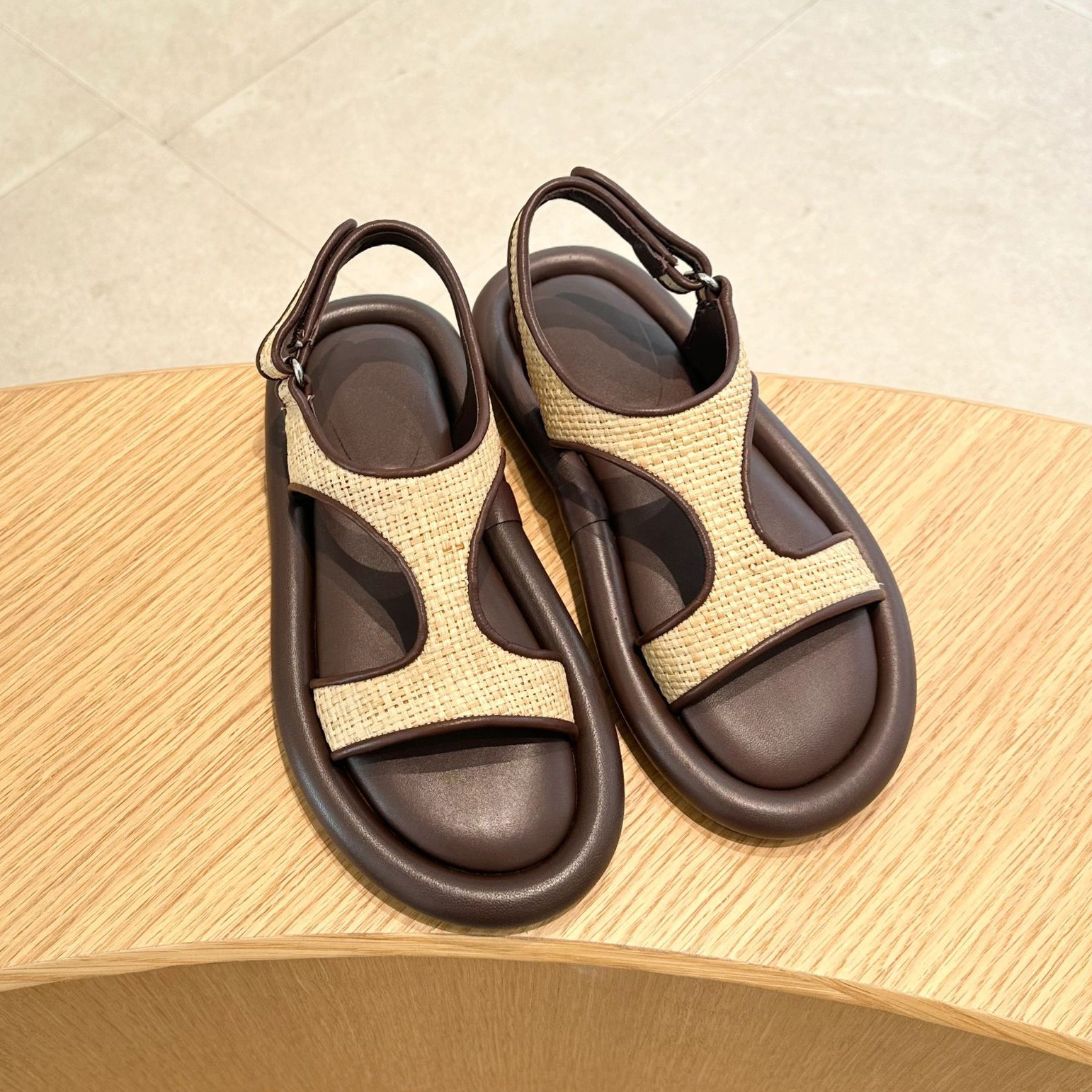 シープスキンレザー厚底ローマンサンダルレディース夏中空ワンラインオープントゥビーチサンダルスポーツサンダル