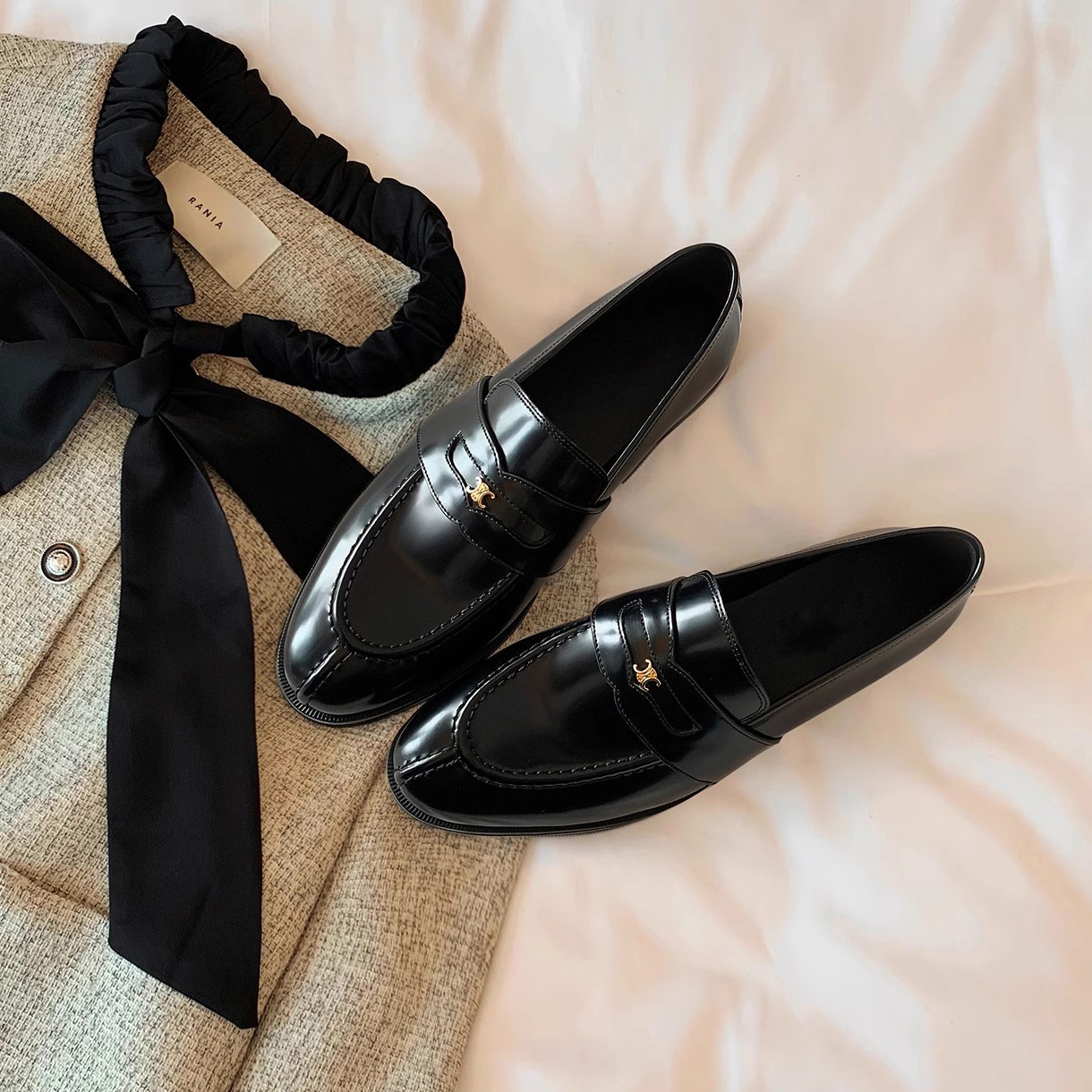シープスキンバージョン~2025年新作スーパーソフト本革厚底ローファー女性用小さなゴールドバックル厚底シングルシューズ黒の小さな革靴
