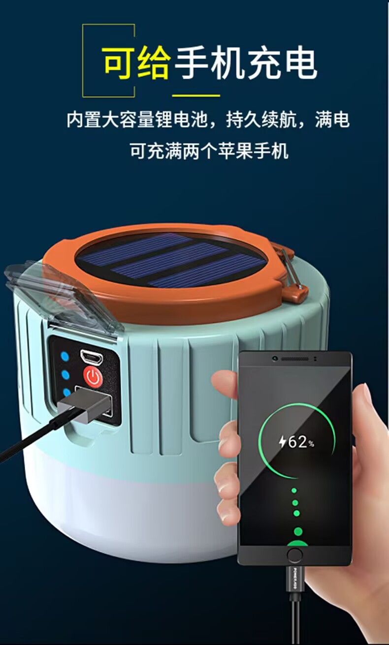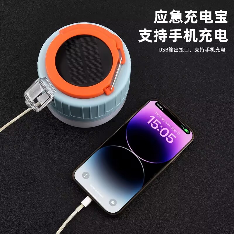 led露营灯 太阳能照明应急灯停电户外灯手电筒长续航帐篷充电挂灯
