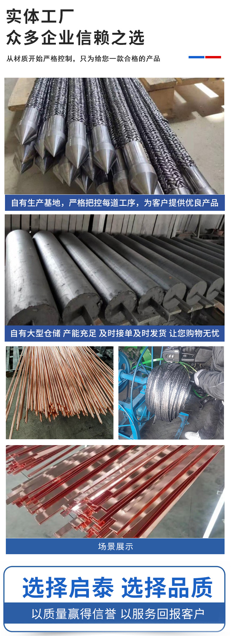 銅メッキアースロッドメーカー銅被覆鋼アースポール銅被覆鋼アースロッド避雷垂直アース銅メッキアースロッド