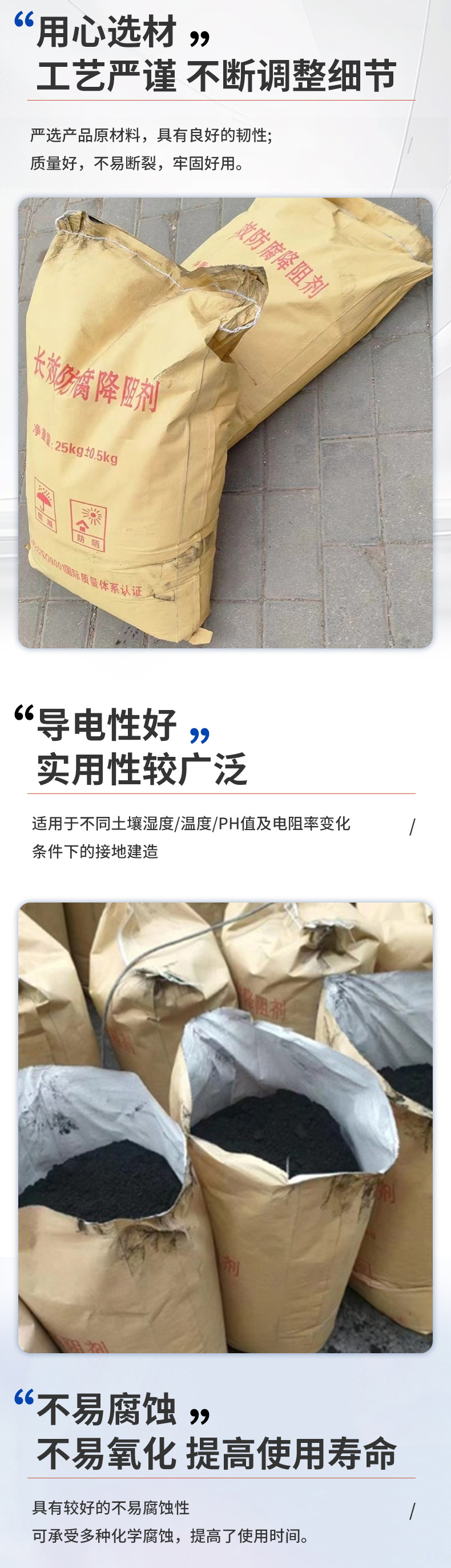 グラファイト降下抵抗剤メーカーは雷保護、帯電防止、防食、接地材料、長期持続物理イオン緩効剤を供給します。