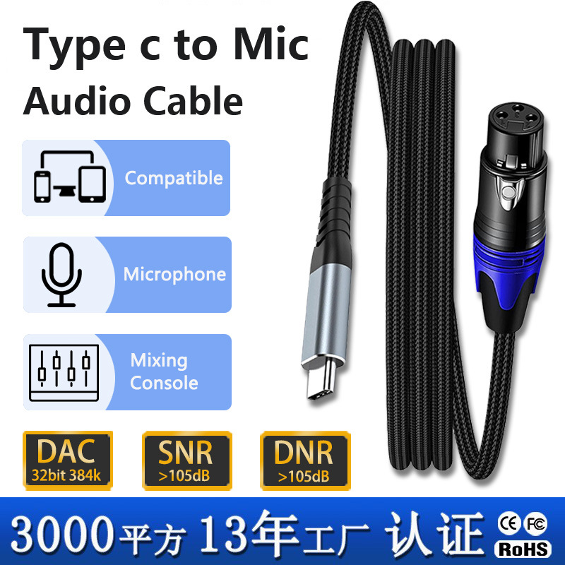 跨境热销USB TYPE-A转卡农母适用于动圈麦克风录音线