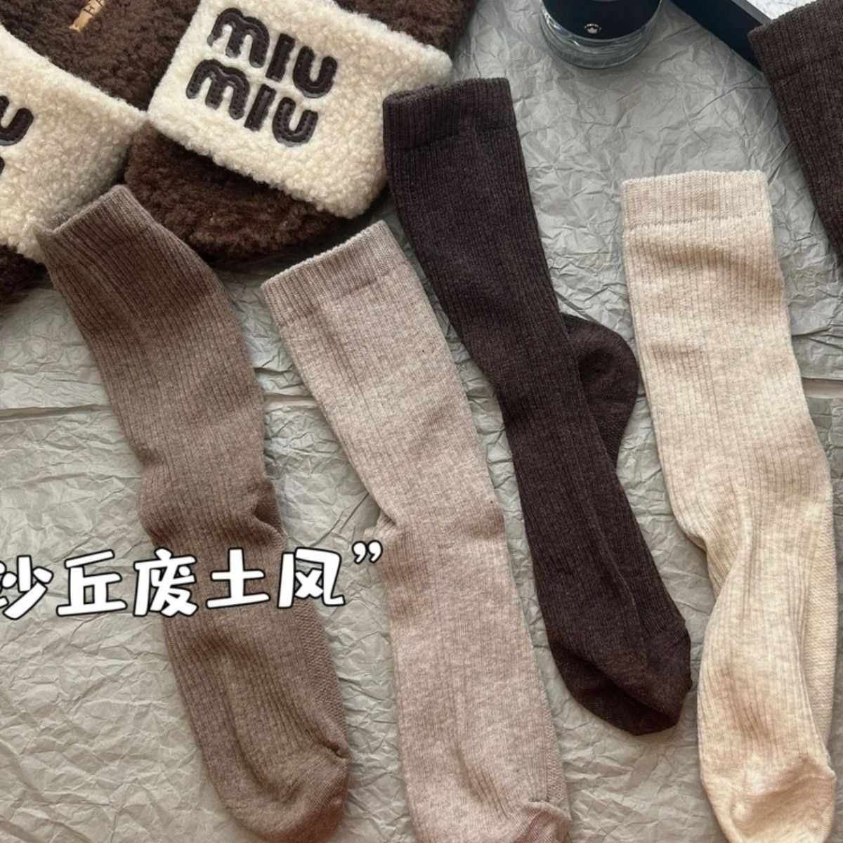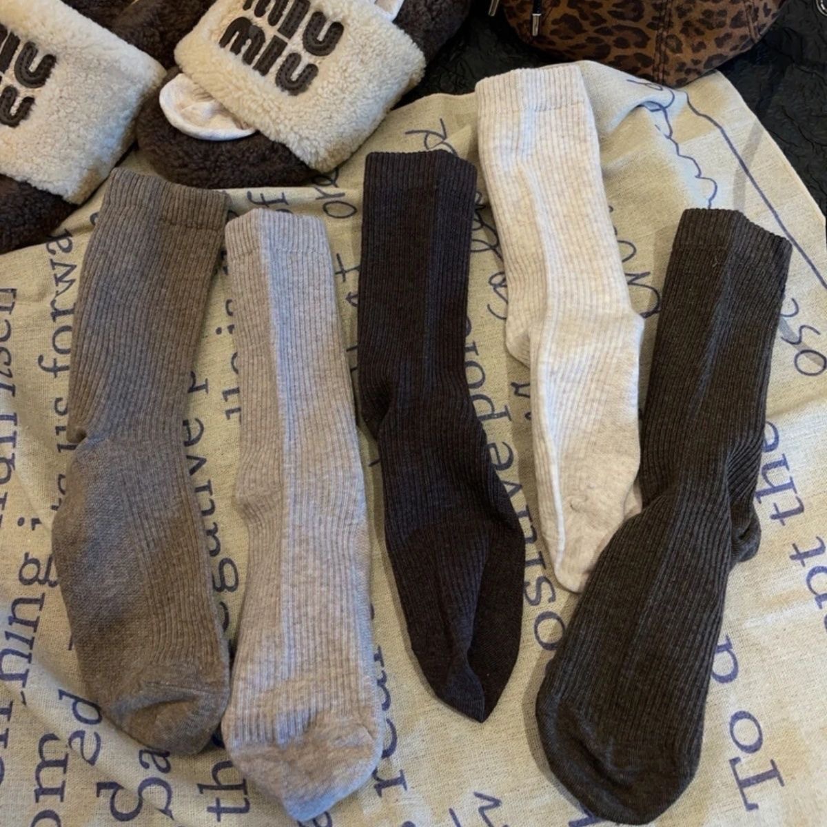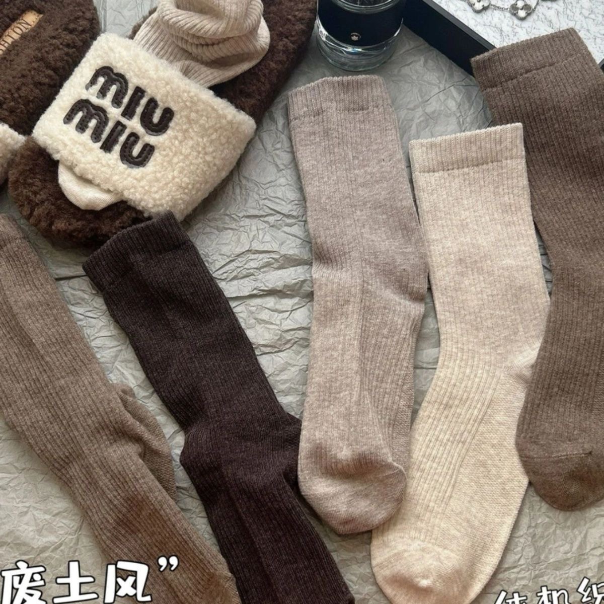 レディースソックス、ミドル丈、秋冬、重ね履きソックス、レトロ、無地、トレンド、万能、ロングソックス、婦人靴下、諸曁靴下メーカー卸売