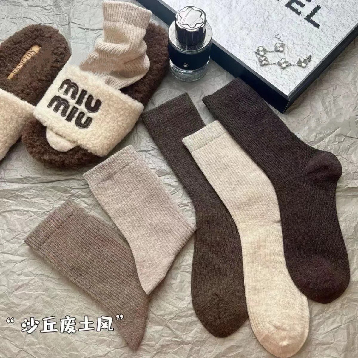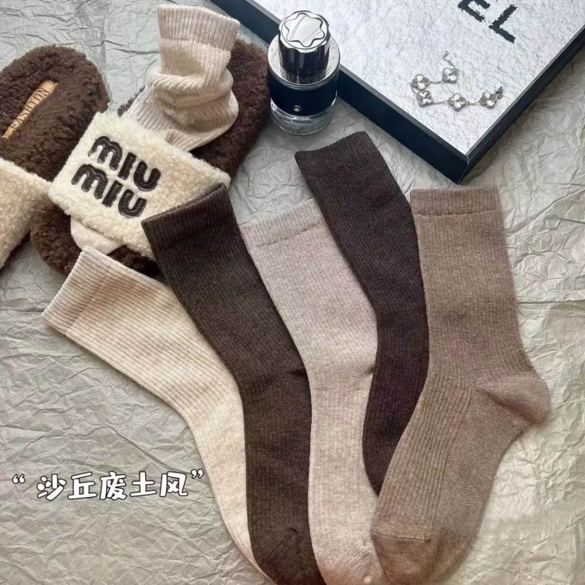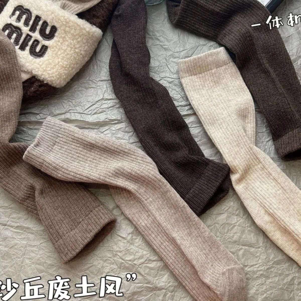 レディースソックス、ミドル丈、秋冬、重ね履きソックス、レトロ、無地、トレンド、万能、ロングソックス、婦人靴下、諸曁靴下メーカー卸売