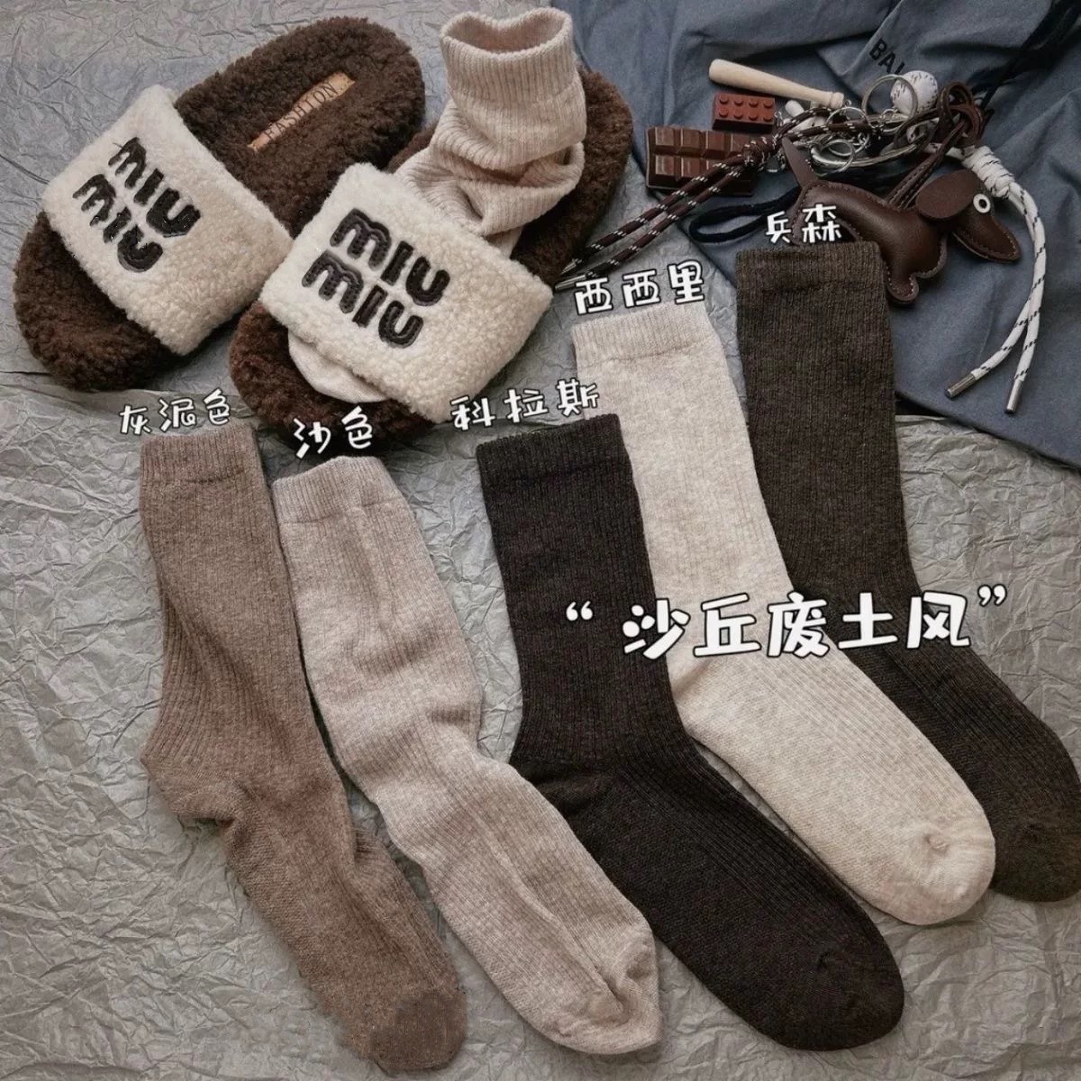秋冬复古藏青色棕色袜子女中筒堆堆袜ins潮流百搭不勒腿诸暨袜业