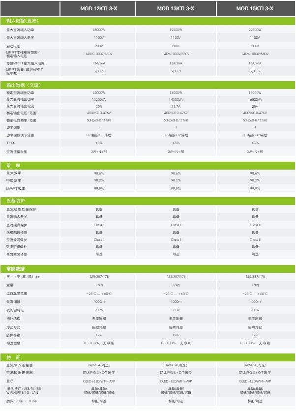 モデル番号 MOD 9000TL3-X,MOD 10000TL3-X,MOD 12000TL3-X,MOD 15000TL3-X