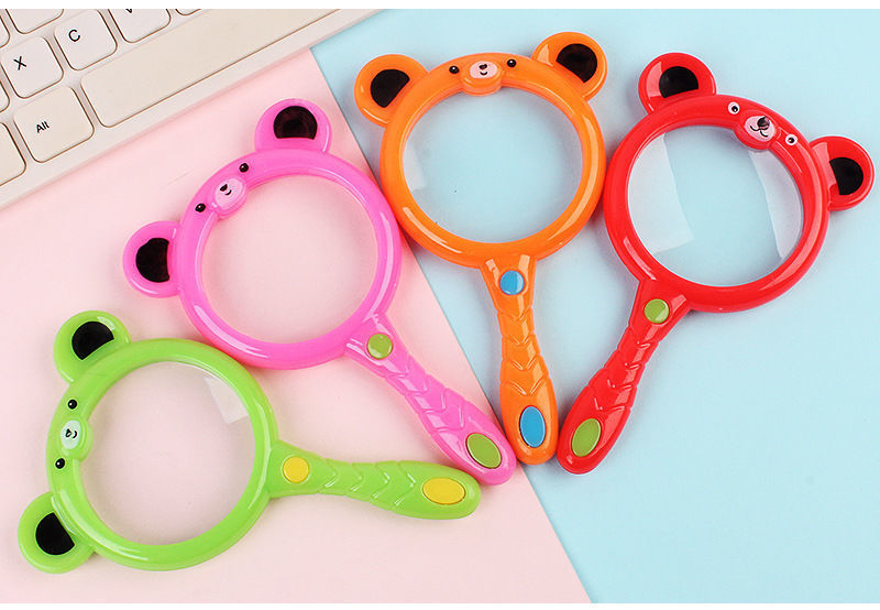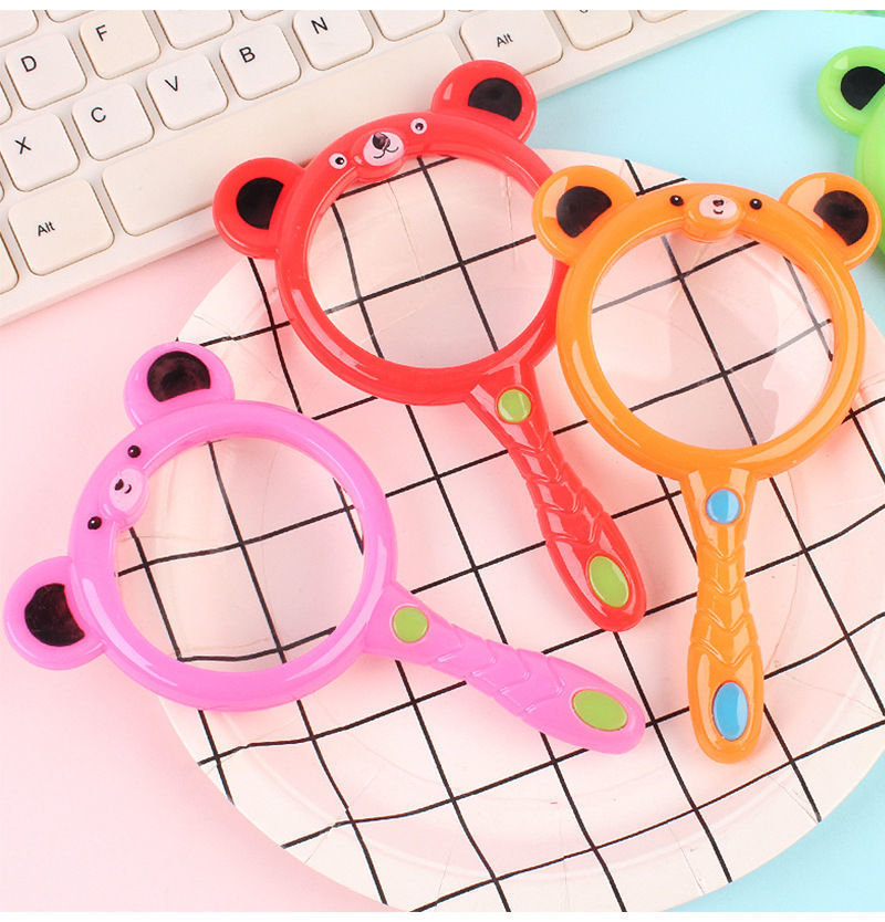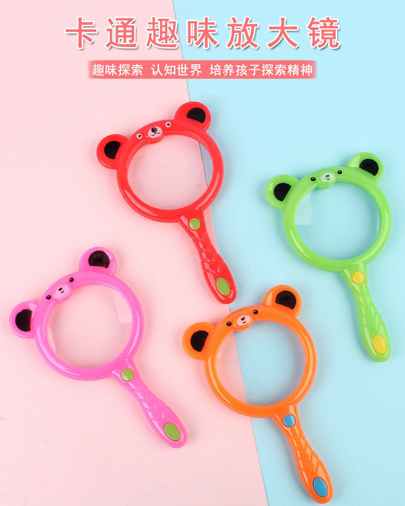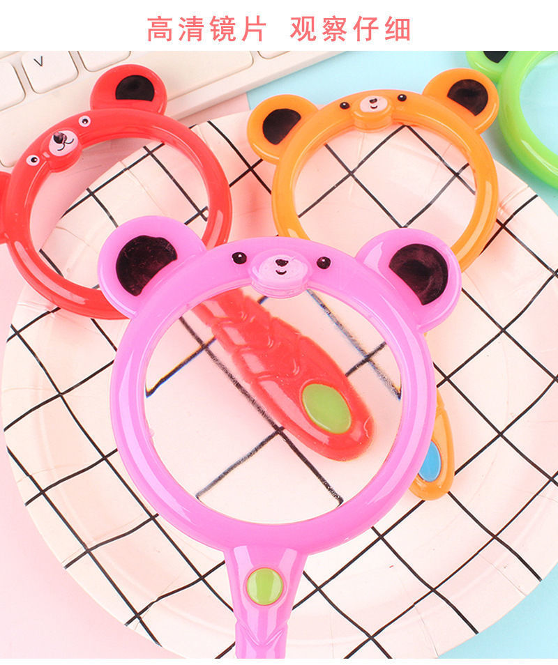 专供外贸卡通小熊放大镜糖果色幼儿园学生探索科教动植物观察玩具