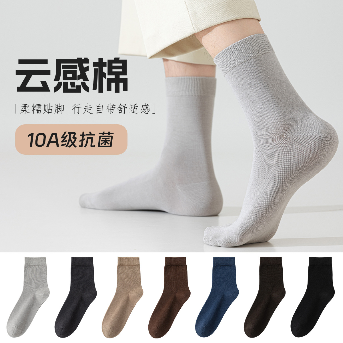 云感纯棉袜子男中筒秋冬厚款防臭抗菌全棉春秋男士黑色商务长袜