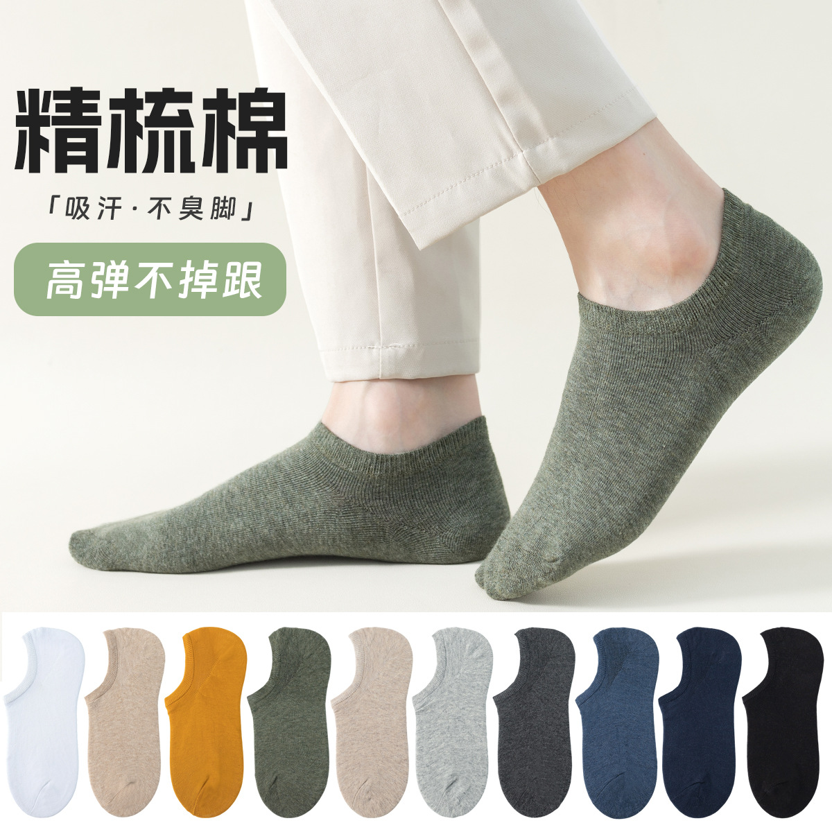 靴下 メンズ コーマ綿 消臭 吸汗 滑り止め 脱げにくい 浅口 インビジブルボートソックス ショートソックス 夏用 メンズソックス 純綿