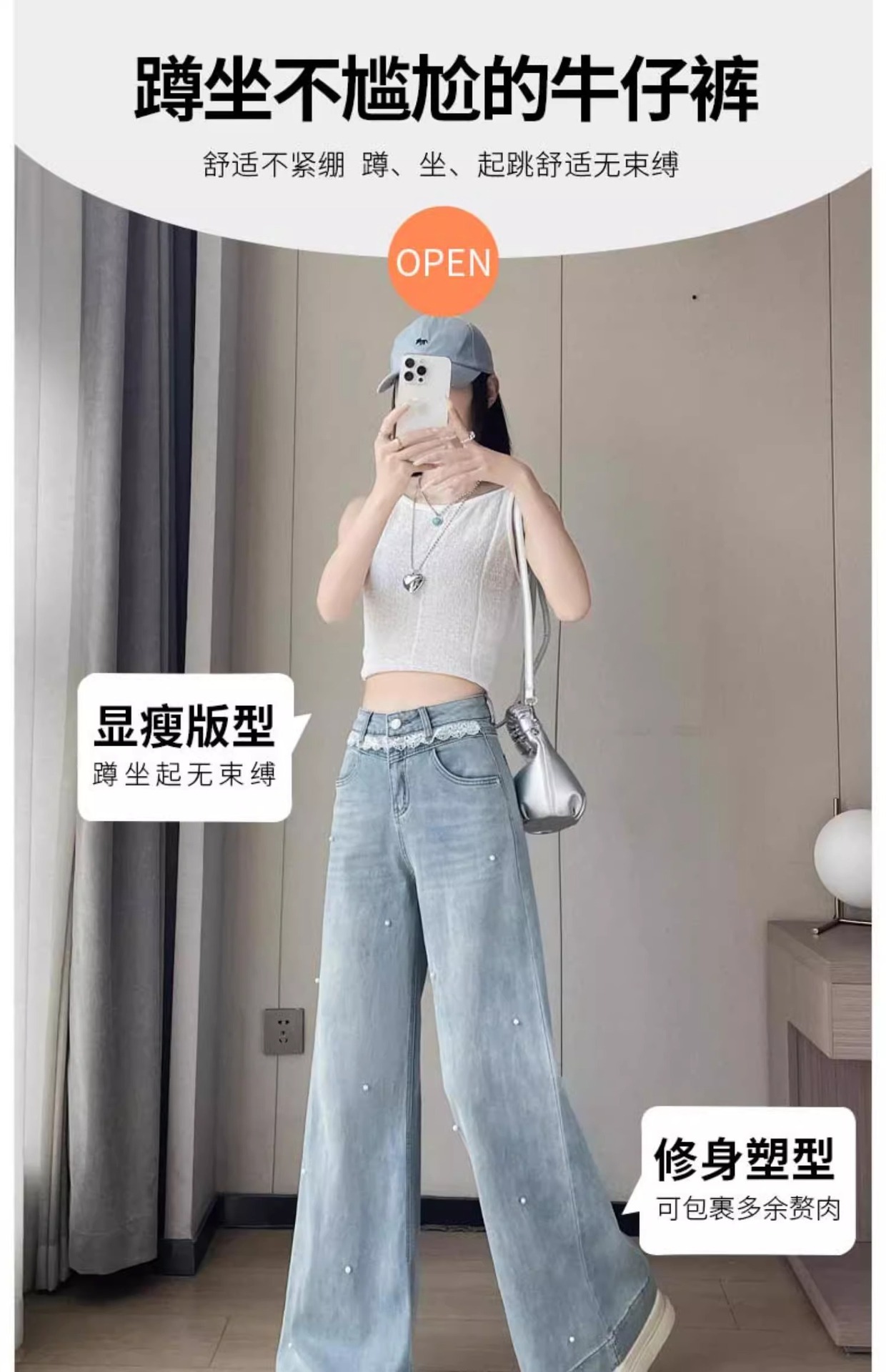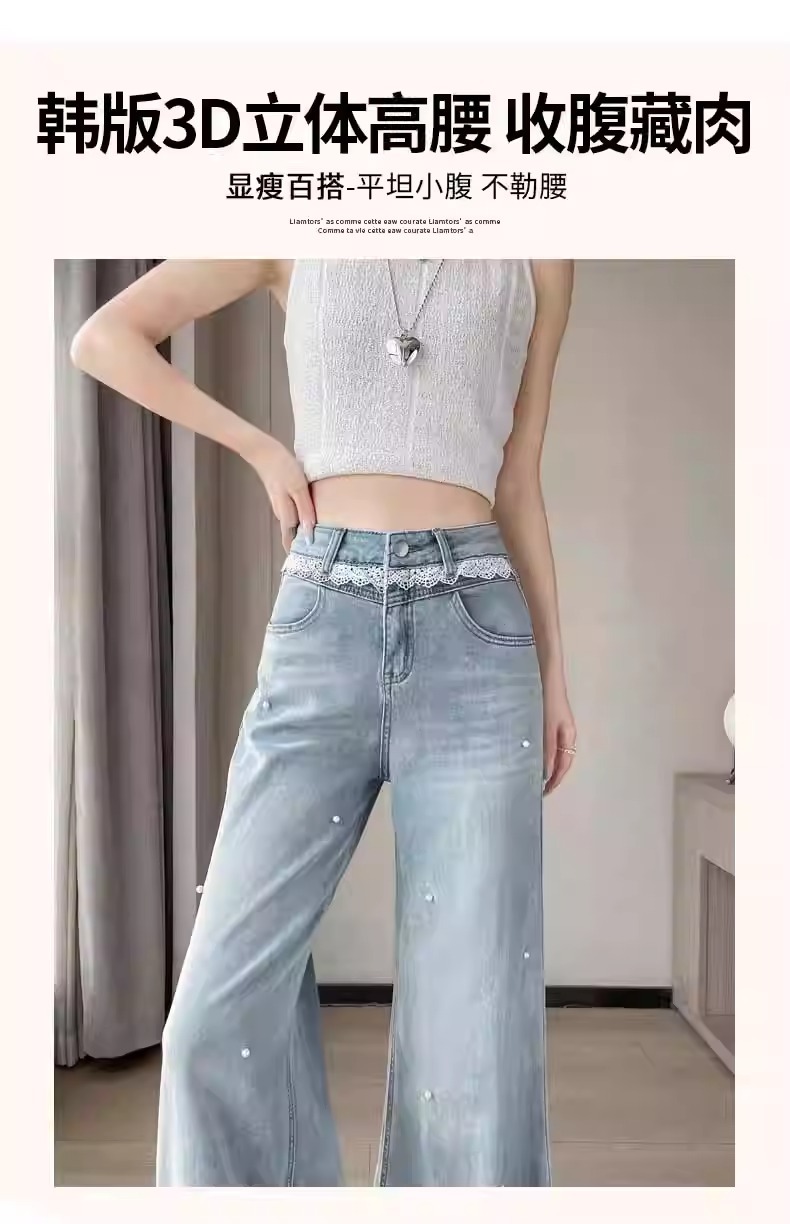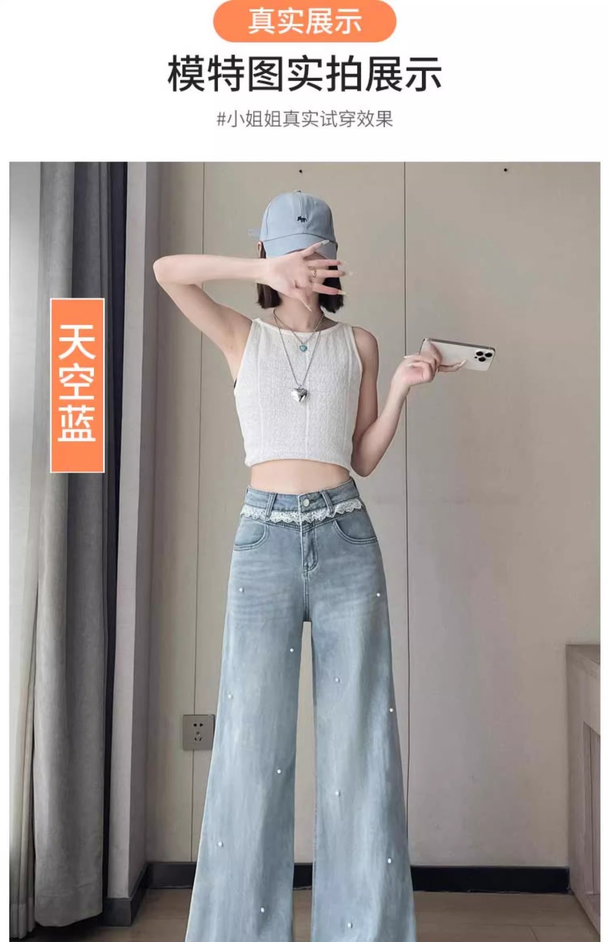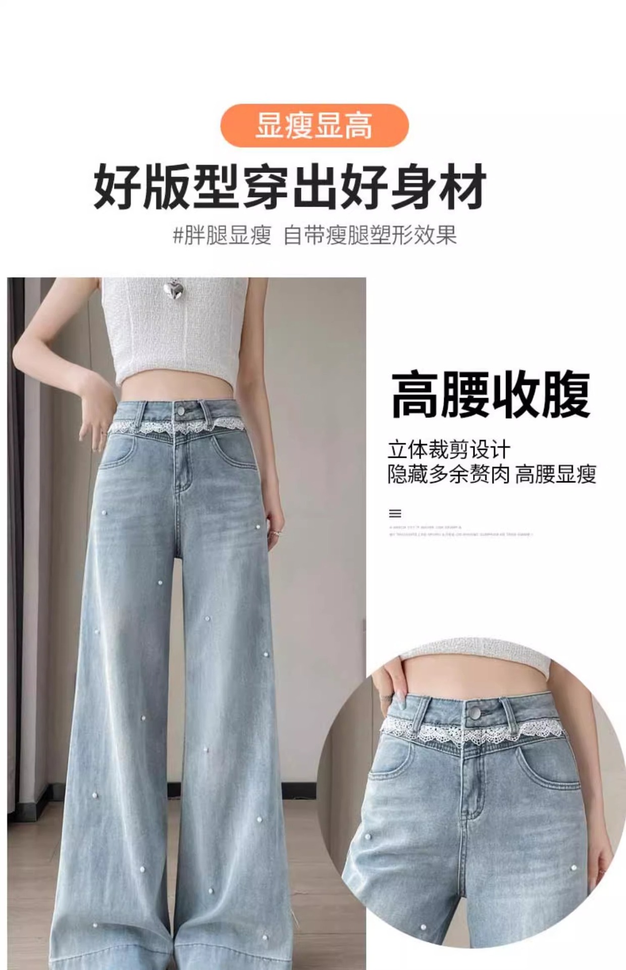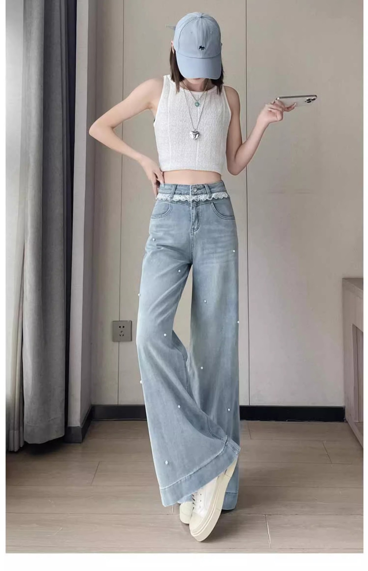 ビーズテンセルワイドレッグジーンズ女性のための 2025 夏超薄型リヨセルレギンスレースフラッグパンツ