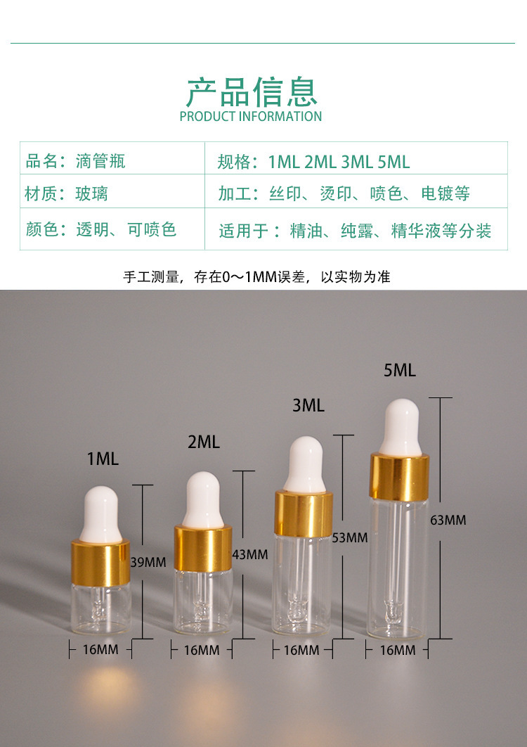 メーカー直販透明点滴瓶精華液分注瓶1ml ~ 5mlの小さな精油瓶化粧品のサンプル瓶