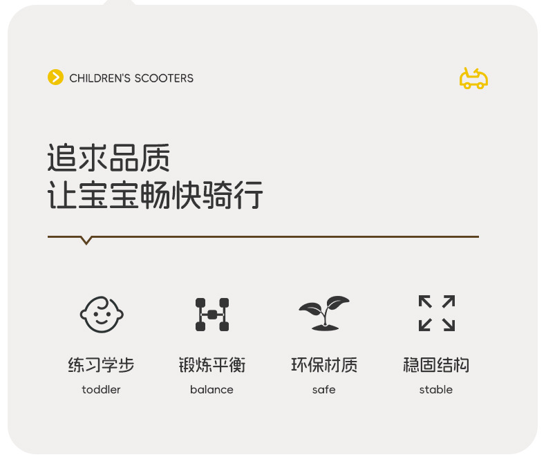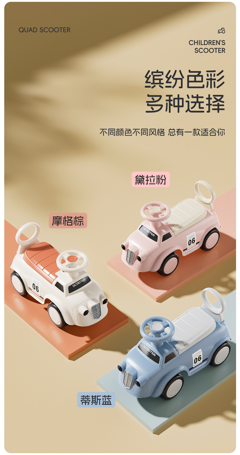 メーカーは、1~3歳の男の子と女の子向けの子供用スクーター、バランスカー、ギフト、横転防止スクーターを供給しています。