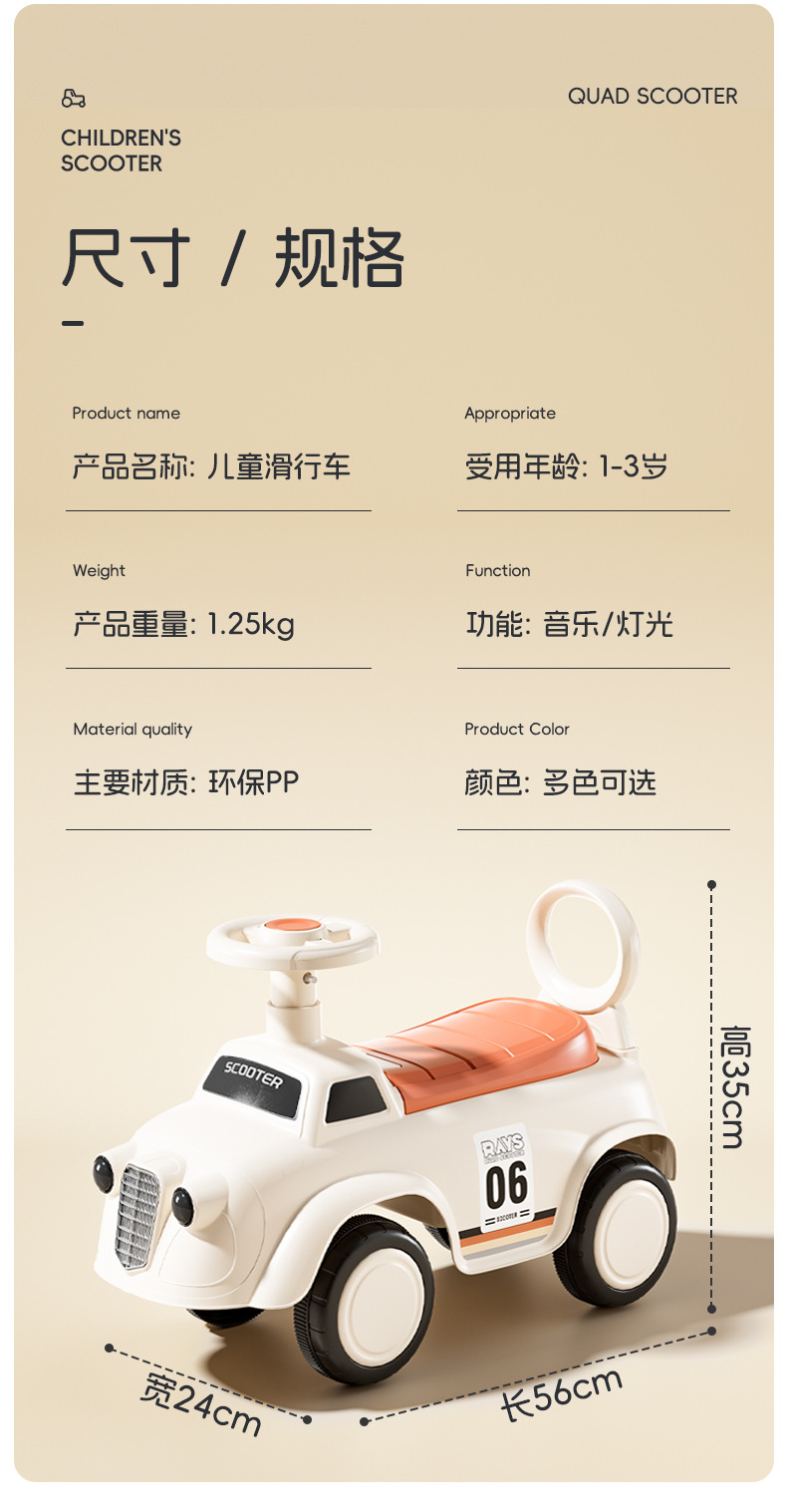 メーカーは、1~3歳の子供用スクーター、横転防止、落下防止、サイレントベビー四輪ペダルなし歩行器を供給しています。