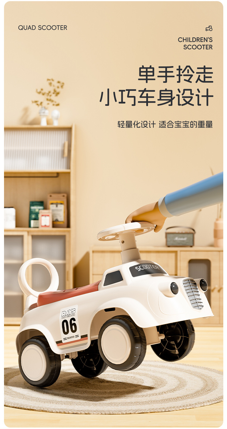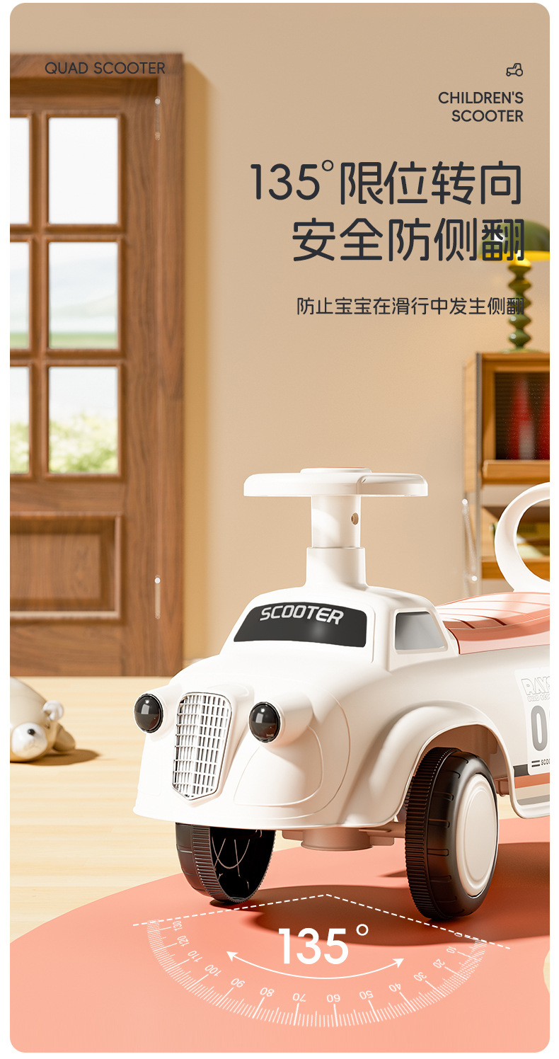 工場直送の子供用レトロカー、サイレントスクーター、1歳から3歳までの男の子と女の子向けの四輪スクーター、ツイストカー