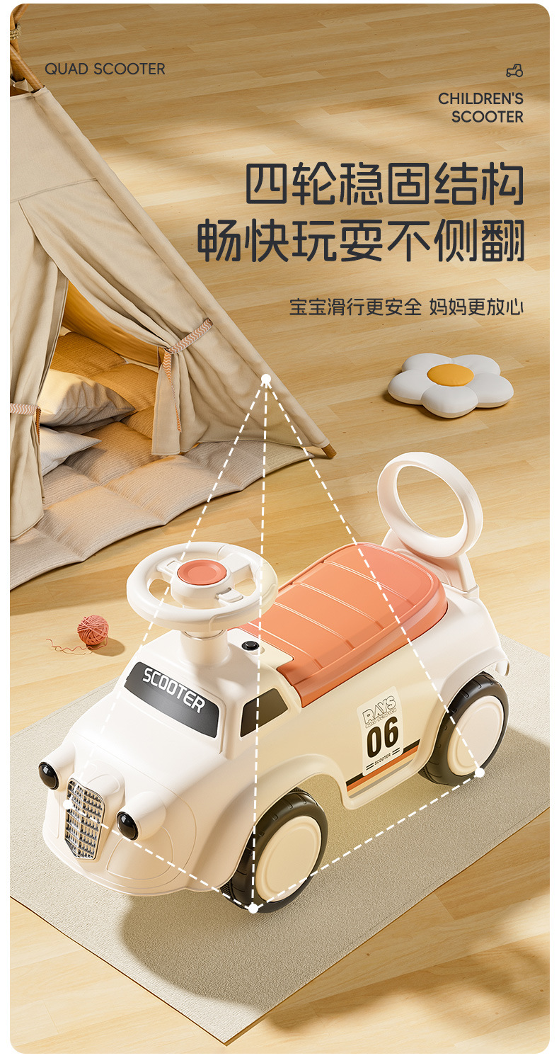 クロスボーダー子供用スクーター、四輪バランスカー、ベビーウォーカー、歩行器、滑り止めカー、子供用スクーター在庫あり