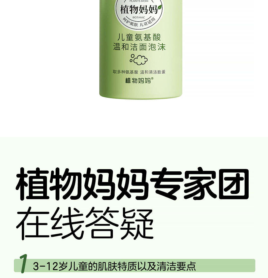 【夏の軽いスキンケア】植物ママ 子供・ティーンエイジャー向け ジェントルクレンジングフォーム 学生用洗顔料 オイルコントロール