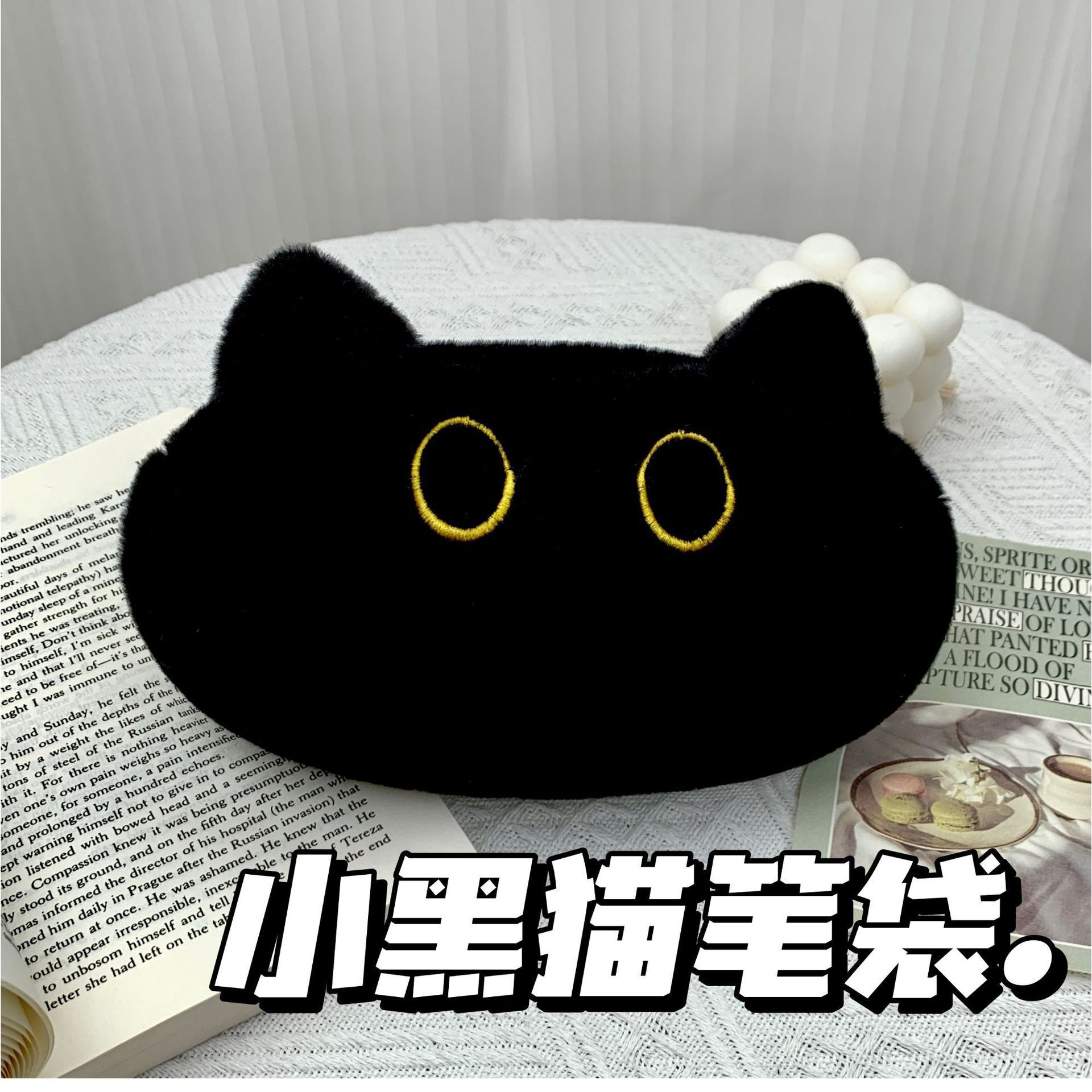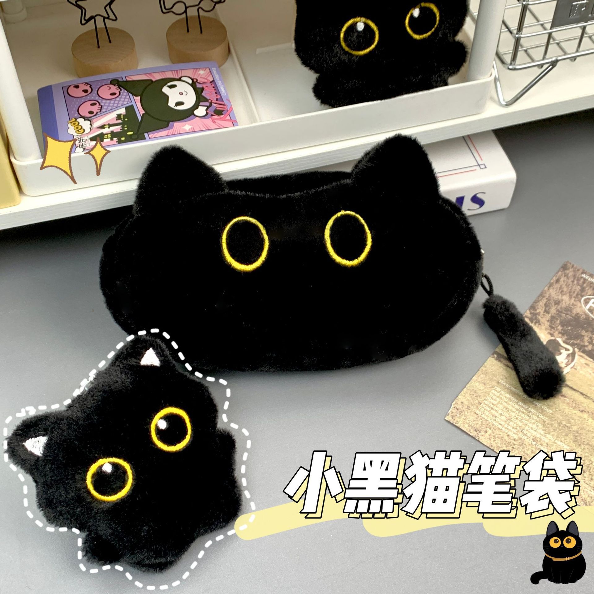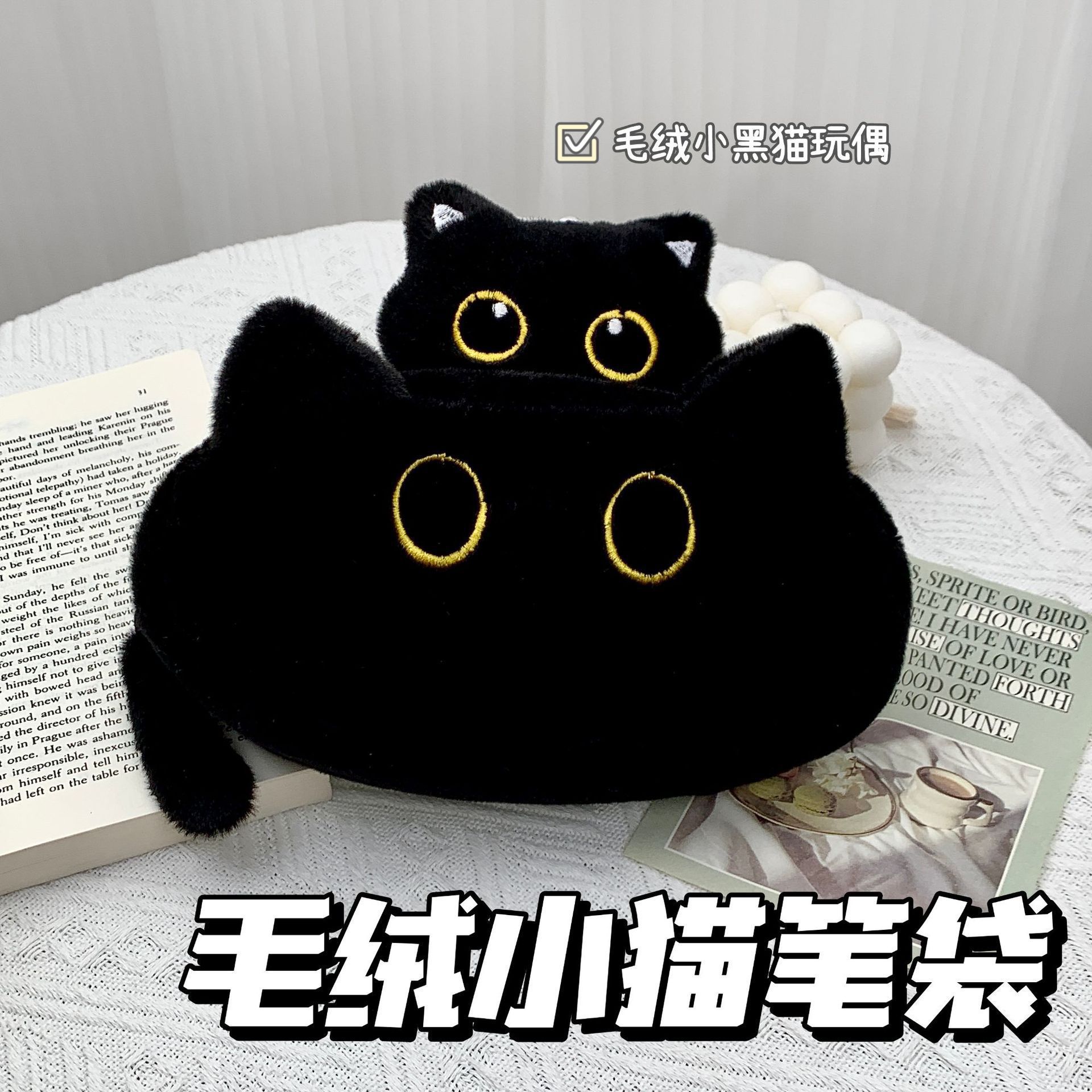 新品小さな黒猫ペンポーチ学生かわいい猫文房具ケース収納袋高颜値大容量ぬいぐるみポーチ