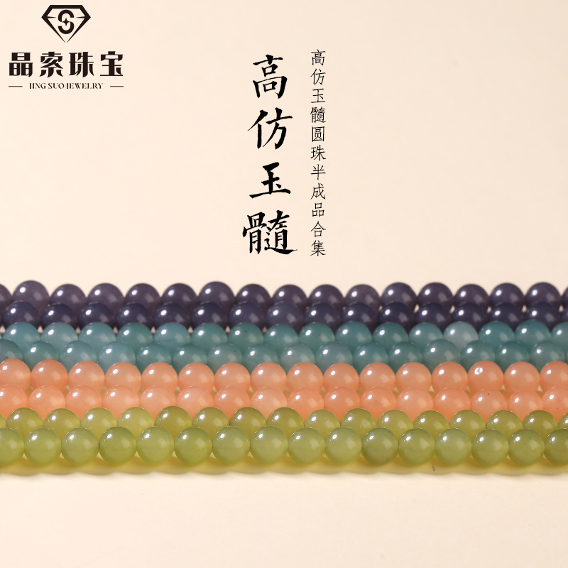 晶索珠宝 高仿玉髓散珠 串珠配件手工DIY半成品饰品配件圆珠批发