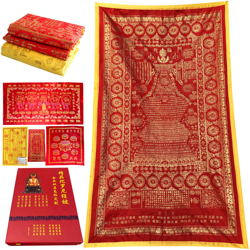 刺繍入り両面仏教経被ギフトボックス、高級陀羅尼経被、経被(経被の表面は経典の経文を織り込んだもの)の拡大・幅広・厚手化された5点セット