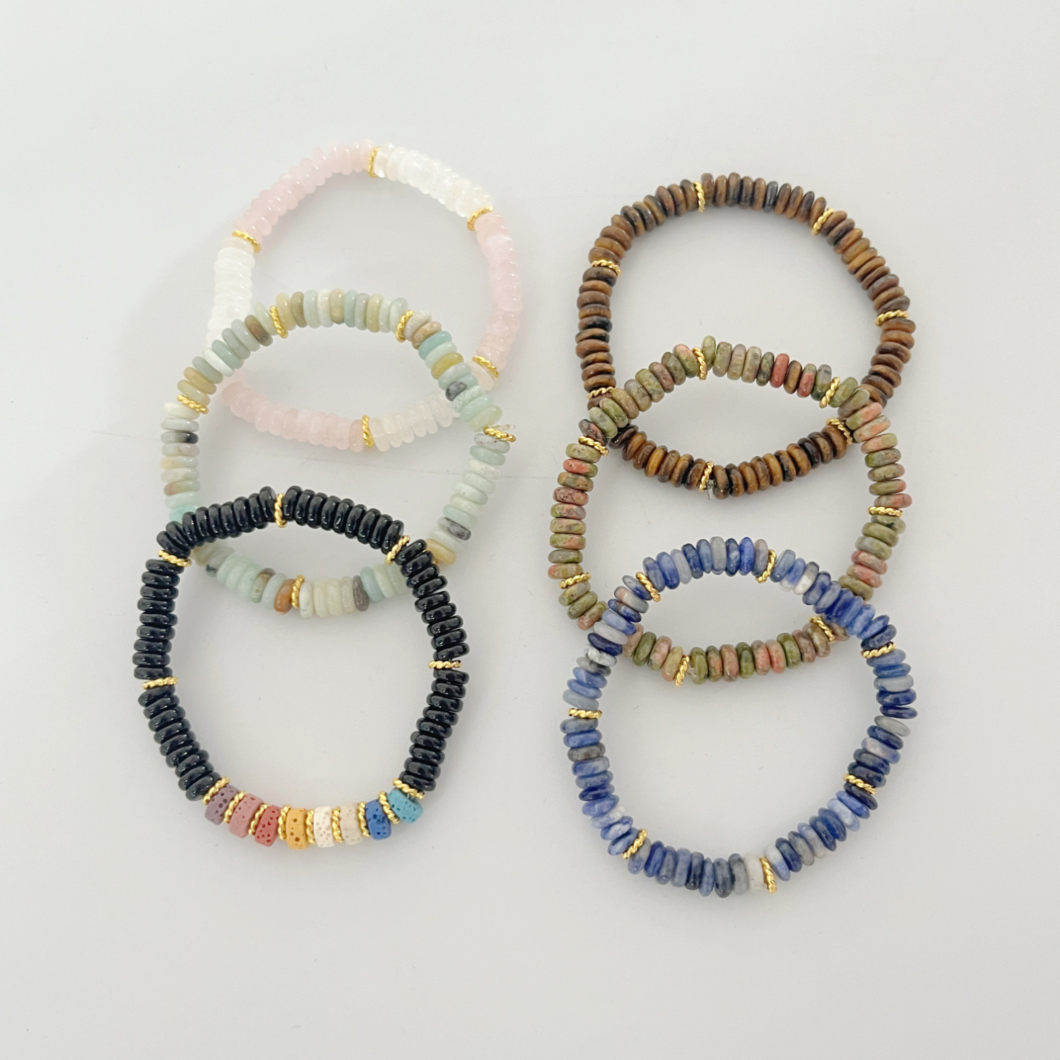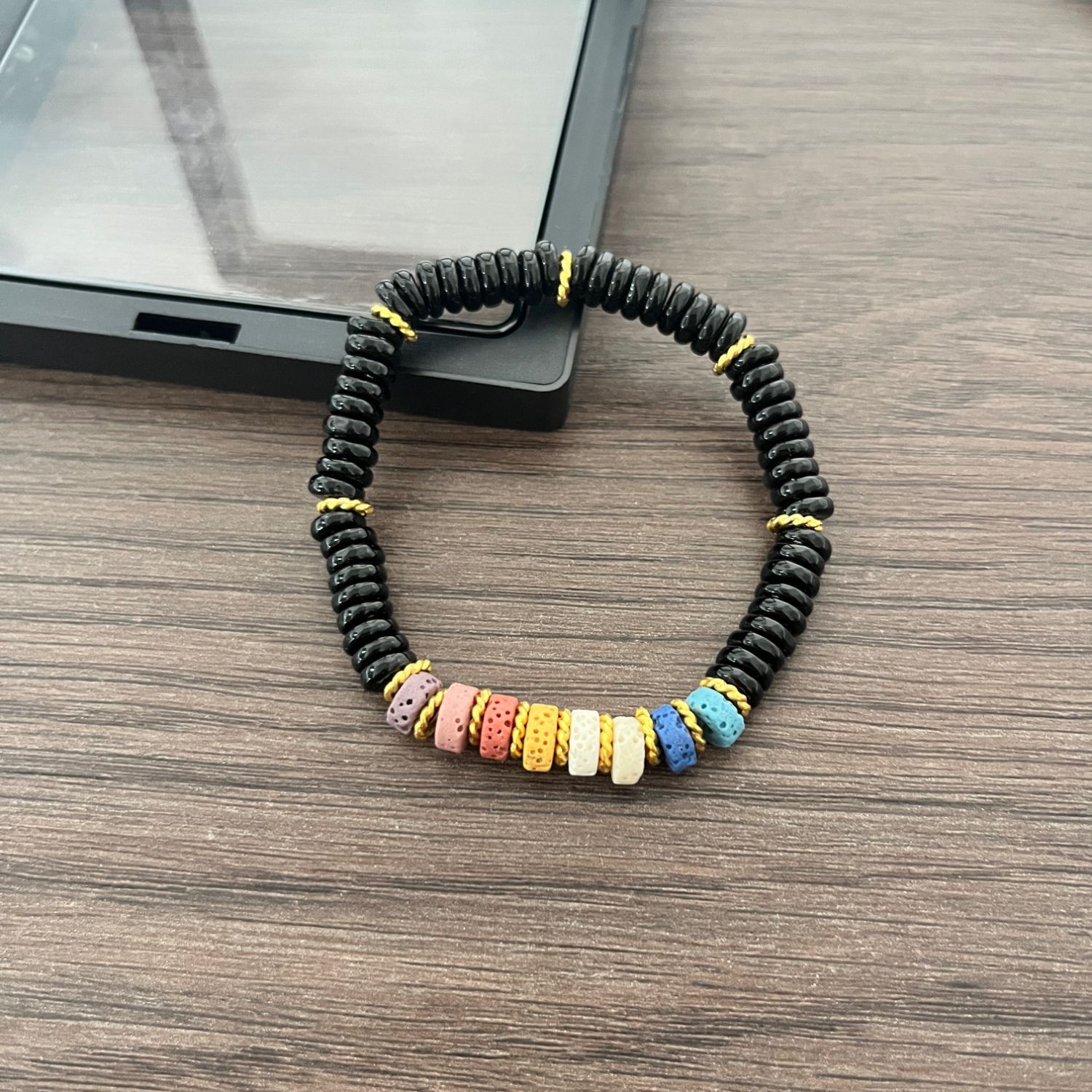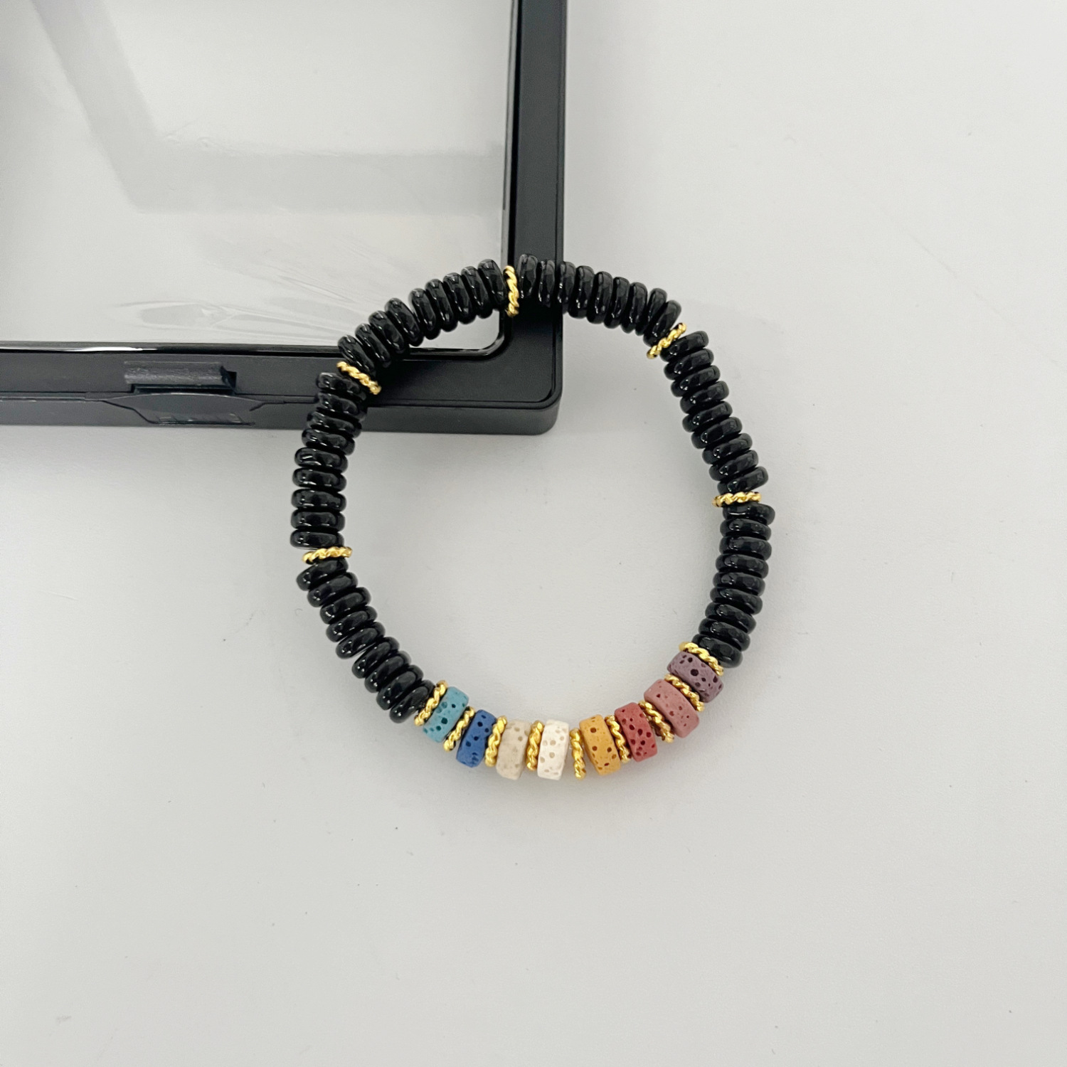 ヨーロッパとアメリカの国境を越えたtemuホットセールレトロシンプルライト高級天然フリスビークリスタルビーズブレスレット火山石ギフト