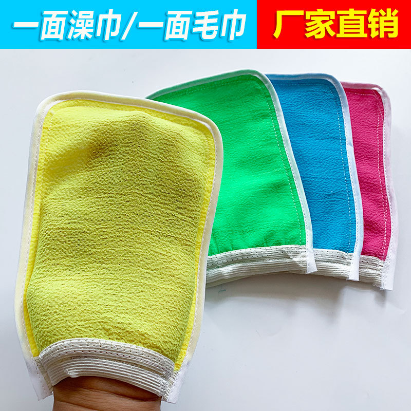 レインボーストリップバックスクラブタオル、二層粗細糸バスタオル、拡張および幅広バスタオル、背中拭きロングストリップバックスクラブタオル