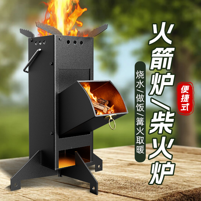 新款柴火炉户外便携折叠火箭炉小型柴火灶野炊露营取暖炉具装备