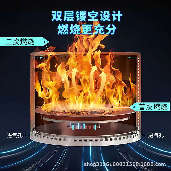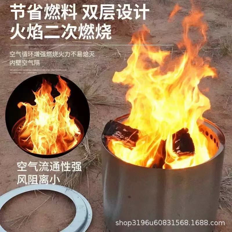 国境を越えたスポットアウトドアキャンプ薪ストーブ二次燃焼無煙ストーブキャンプファイヤーストーブ中庭バーベキューステンレス鋼ストーブ