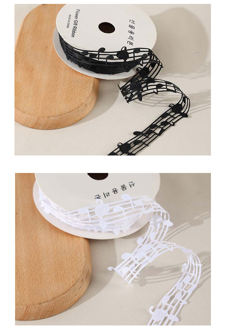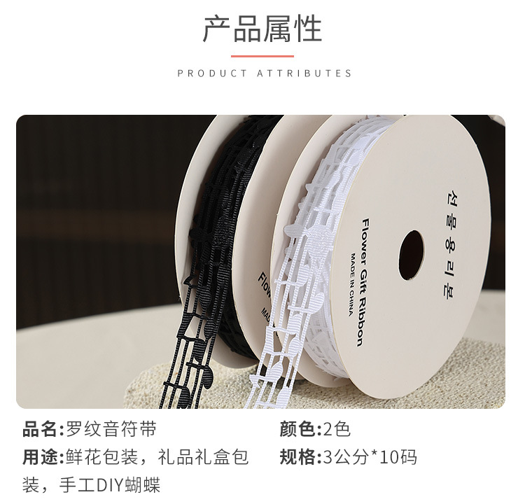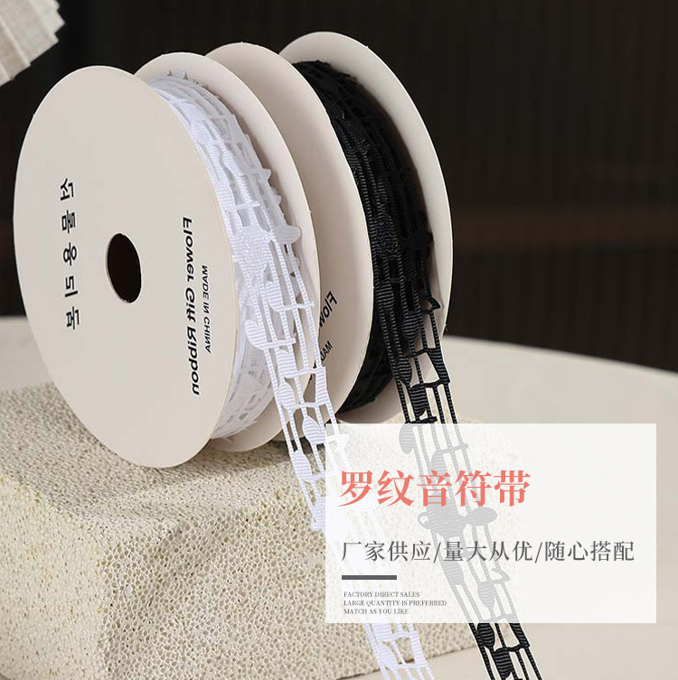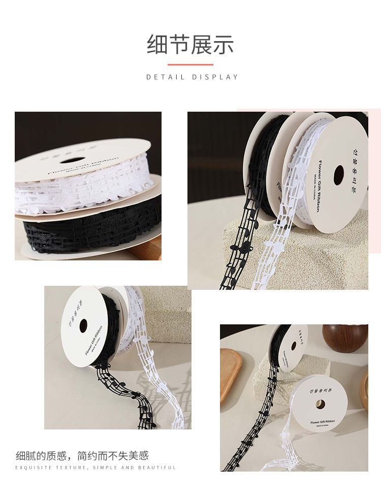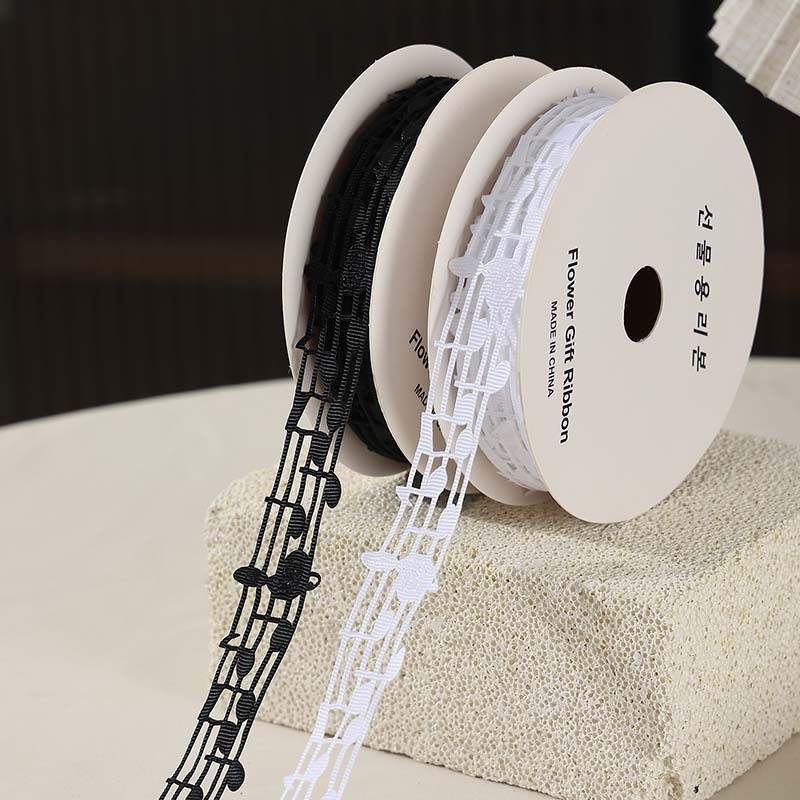 楽譜リボン、音符リボン、中空音楽リボン、白黒リボン、五線譜ギフトボックス、包装リボン