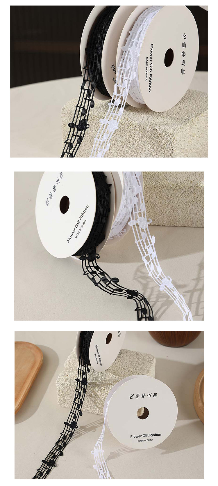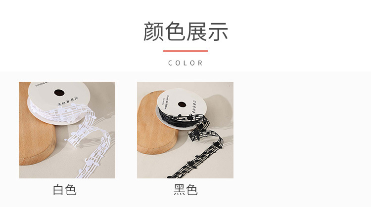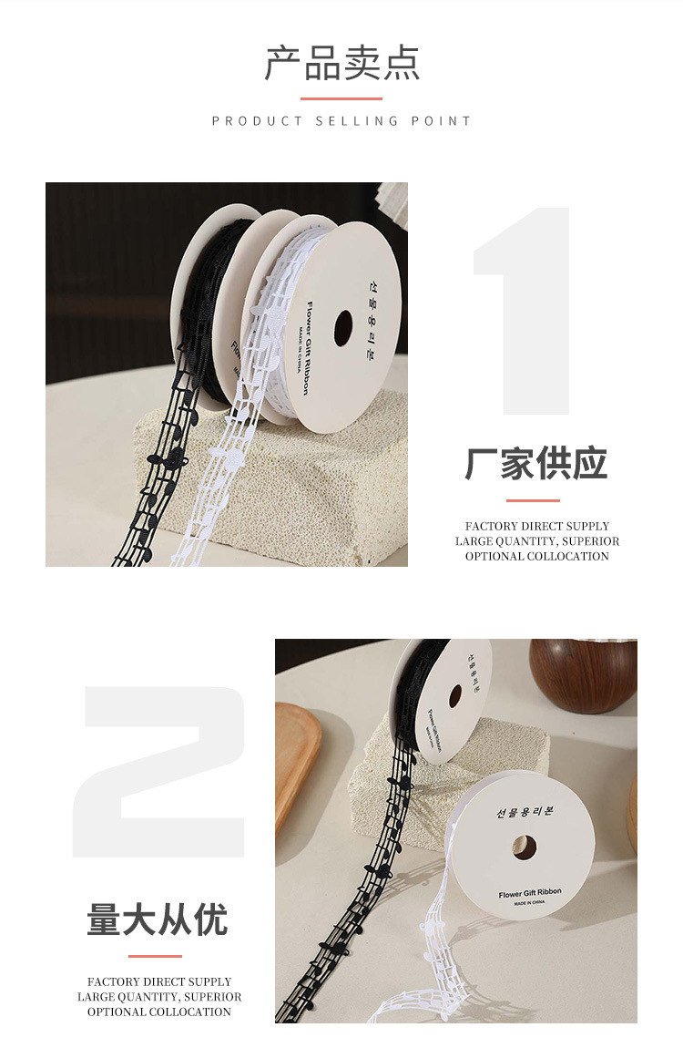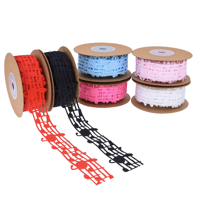 楽譜リボン、音符リボン、中空音楽リボン、白黒リボン、五線譜ギフトボックス、包装リボン