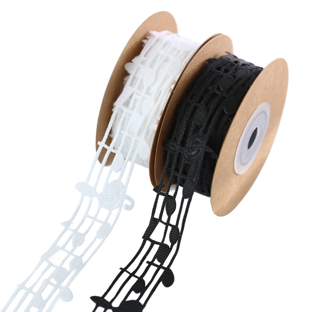 楽譜リボンノートスレッドリボン中空音楽クラフトリボン黒と白のウェビングリボンギフトボックス包装蝶