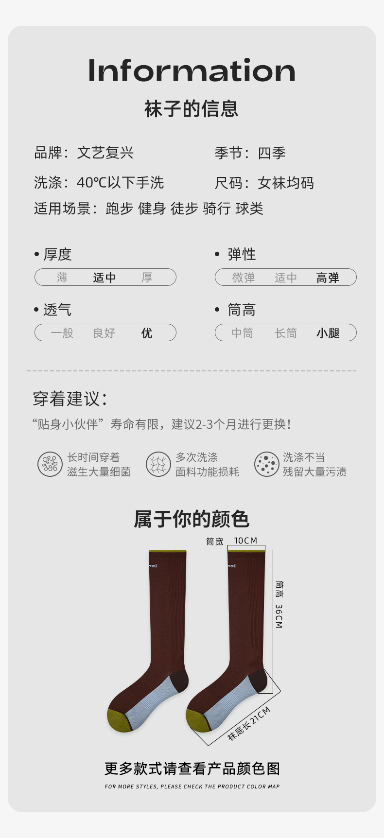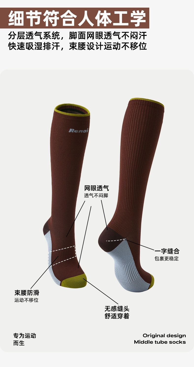 Renaissance运动跑步压力袜女式压缩袜健身跳绳马拉松长筒小腿祙