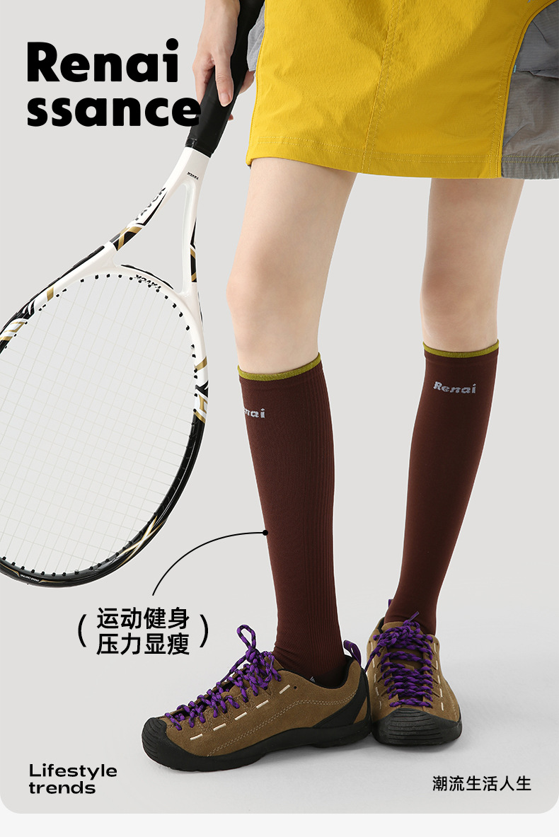 Renaissance压力运动袜子女健身跑步羽毛球压缩袜瑜伽瘦腿小腿袜