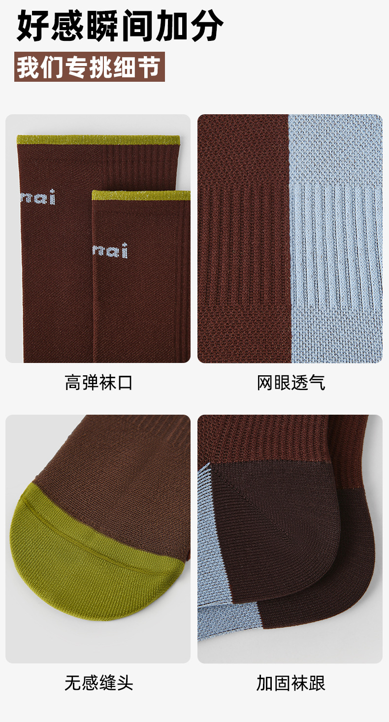 Renaissance专业毛巾底袜子女跑步跳绳袜吸汗透气紫色拼色运动袜