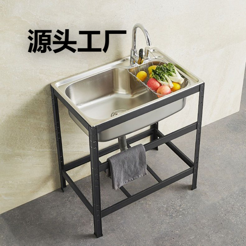简易水槽单槽带支架子厨房不锈钢加固洗手盆家用水池洗菜盆洗碗池