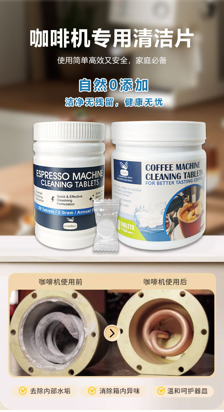 国境を越えたコーヒーマシン発泡タブレットコーヒーマシンスケール除去フィルター汚れ洗浄および除染タブレットクリーニングおよびメンテナンス洗浄外国貿易