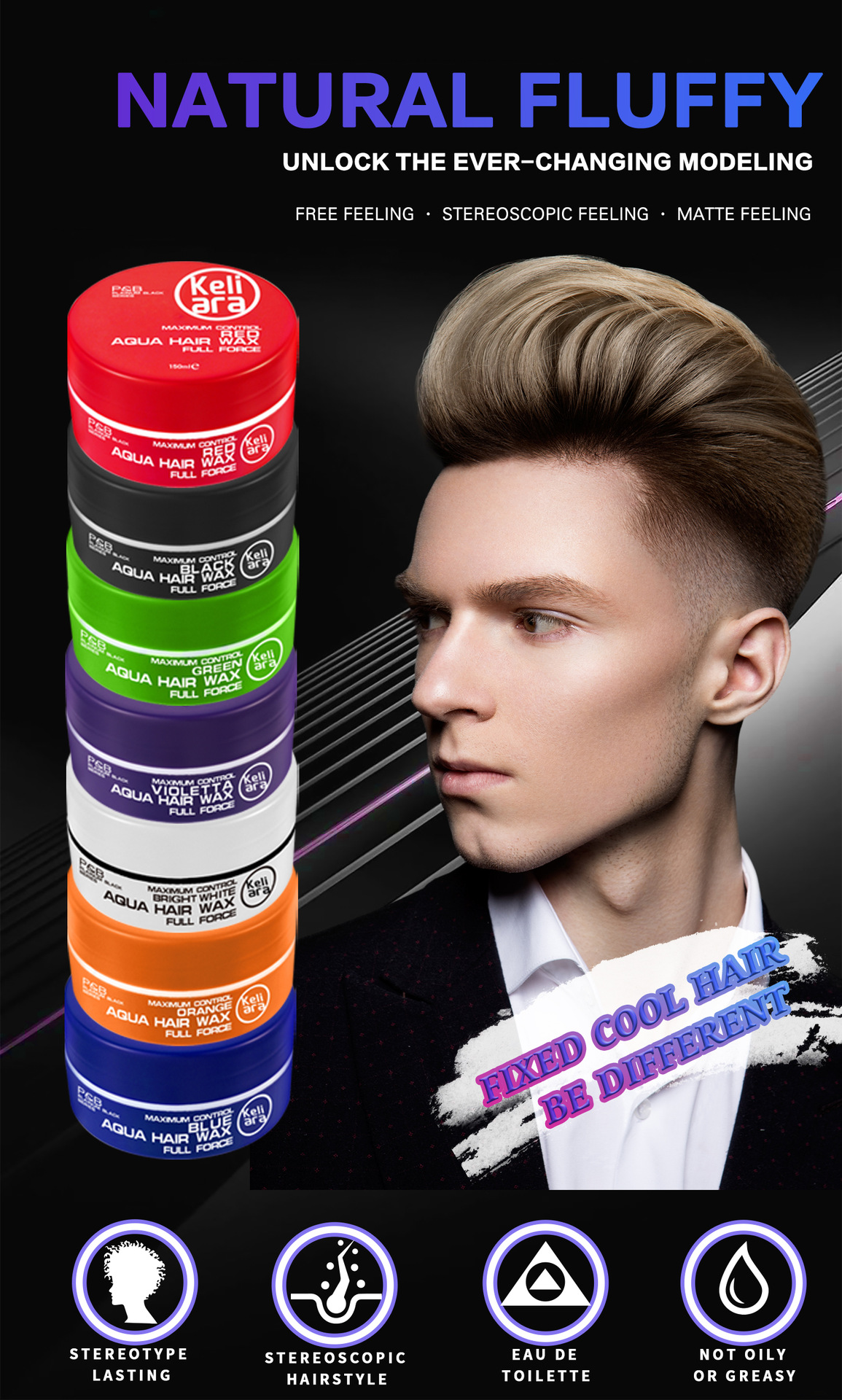 跨境 Hair wax发蜡高弹色头发造型彩色发蜡自然蓬松持久定型发蜡