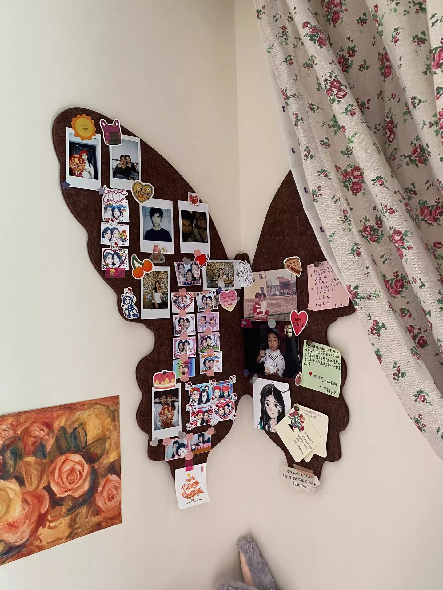 小紅書同モデル蝶フェルト板写真壁infp雰囲気寝室insコルク板掲示板DIYデスクトップ