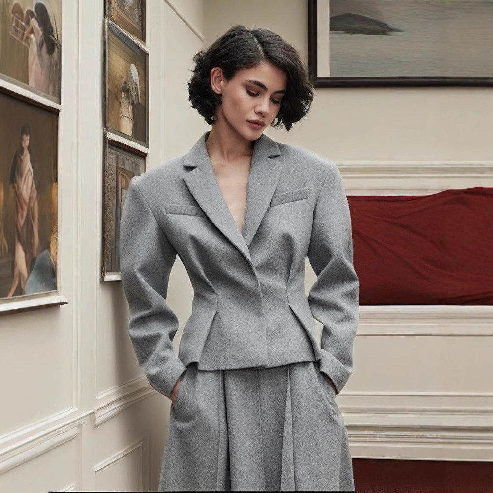 クロスボーダー女装2025春の対外貿易ファッション欧米風ウエストスーツA字ロングスカート気質2点セット