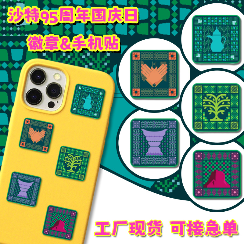 沙特阿拉伯95周年庆活动金属徽章手机贴国庆主题文化胸针工厂批发
