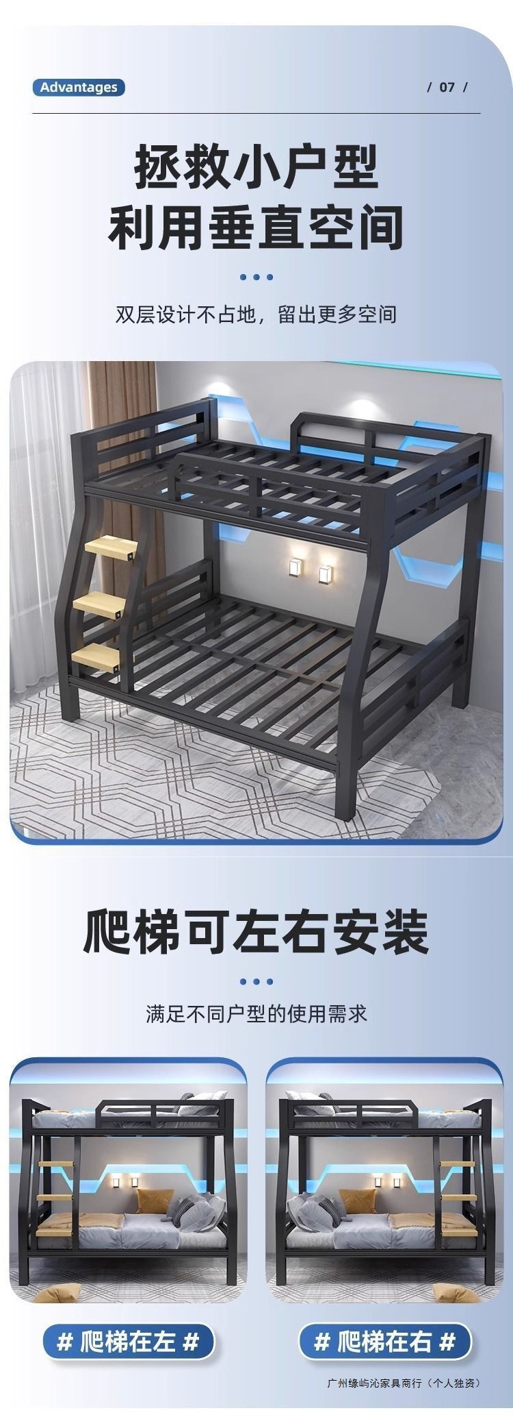 Yla鉄芸高架ベッド複式シングル上段小戸型ベッド下テーブルloft児童屋根裏ベッド下空