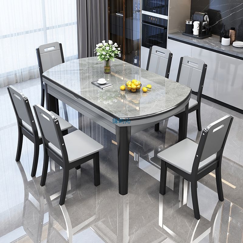 ダイニングテーブル、家庭用光沢のあるスレートダイニングテーブル、イタリアンスタイルの軽い高級感のある拡張可能なラウンドテーブル、モダンでシンプルな正方形と円形の兼用ダイニングテーブル