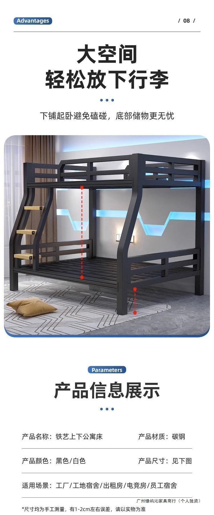 高低床上下床员工宿舍学校上下铺双层床成人太空舱铁艺床小户型床