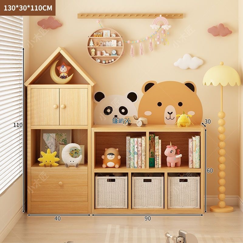 無垢材子供用本棚収納ラック床置きおもちゃ収納低本棚収納キャビネットリビングルーム格子キャビネット絵本ラック