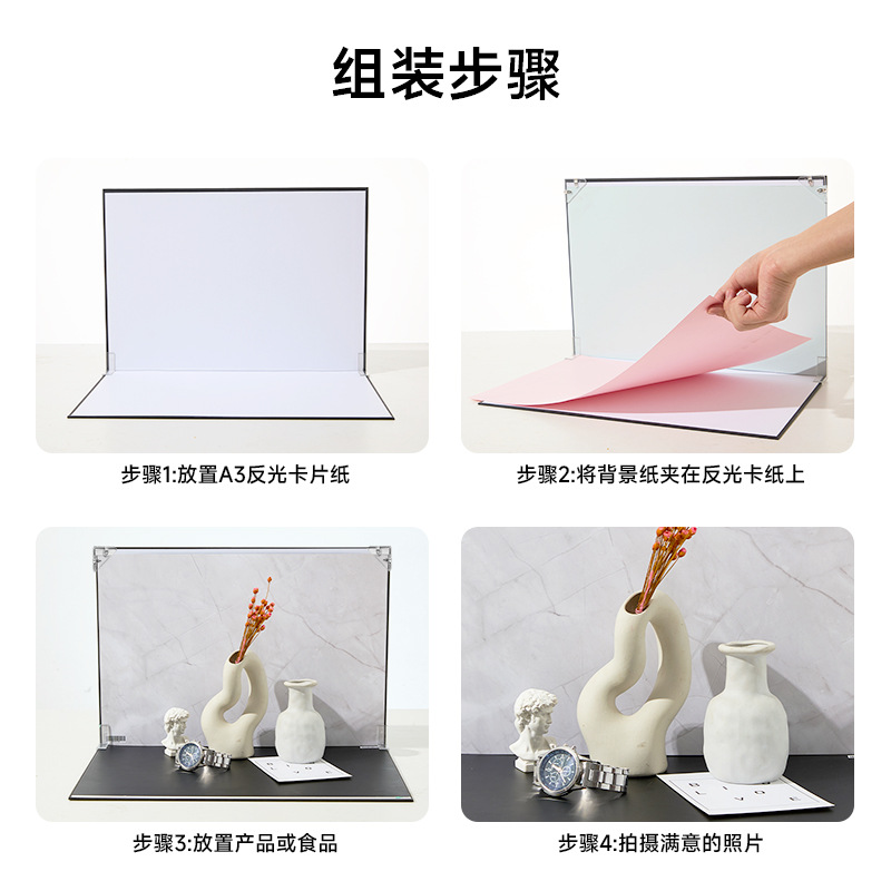 A4折り畳み可能な写真カード紙反射板補光板厚い白色銀色黒色背景大製品写真