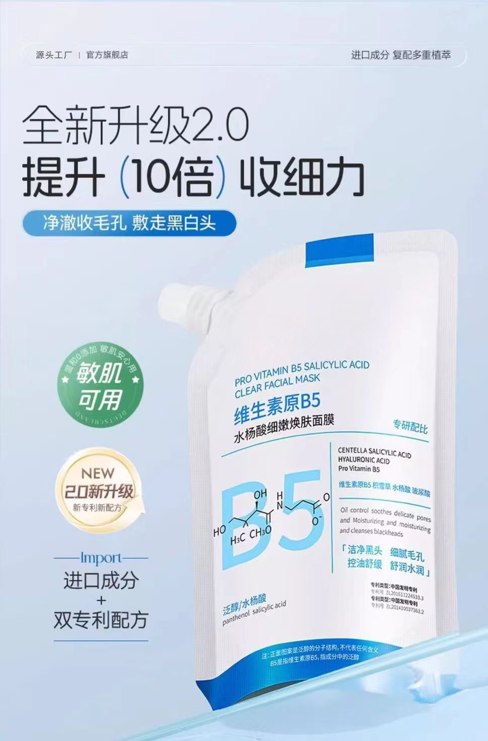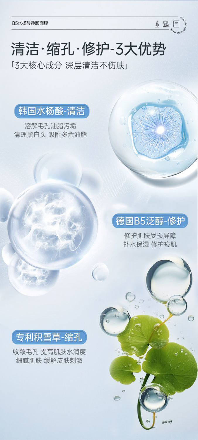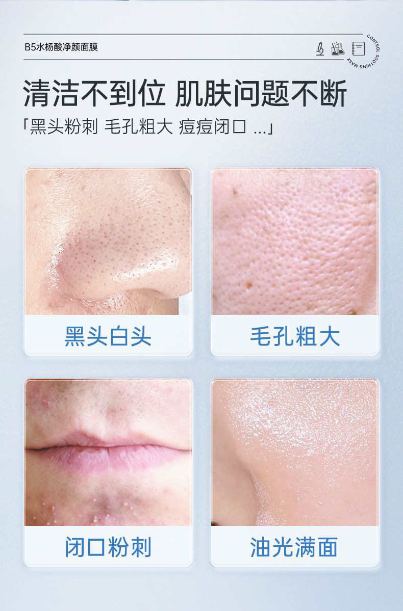 サリチル酸 B5 クレンジングマスク サリチル酸毛穴除去 黒ずみ角質除去 閉じたニキビ 泥マスク クレンジング、水分補給、縮小