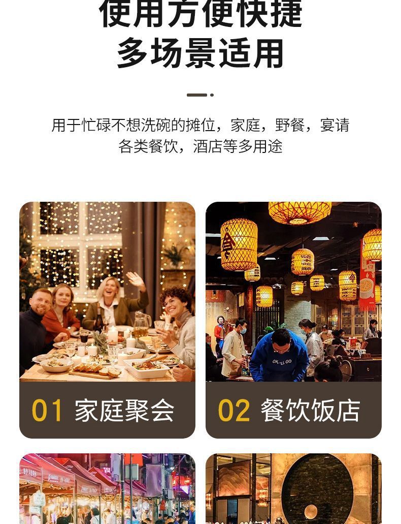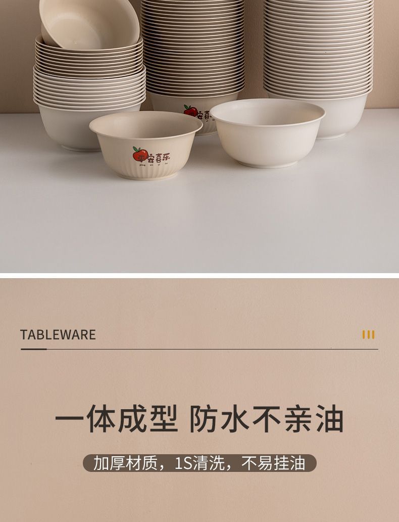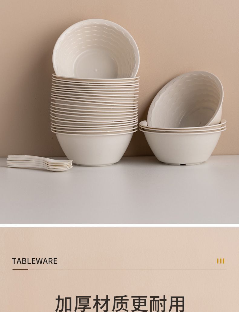 使い捨てボウル、食品グレードの家庭用丼、箸、鍋、屋台、ピクニック食器、厚みのある高温耐性の麺スープボウルとプレート