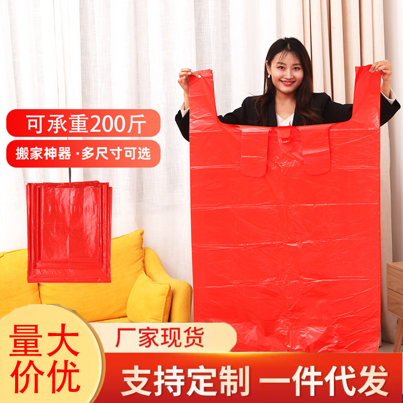 大きいサイズの赤い家庭用ゴミ袋の服の綿の収納袋は一度に引っ越して袋の特大のビニール袋を包装します。