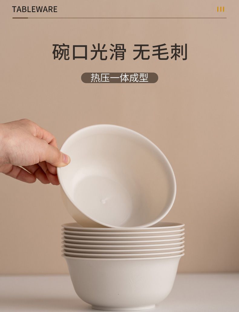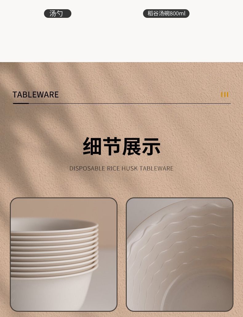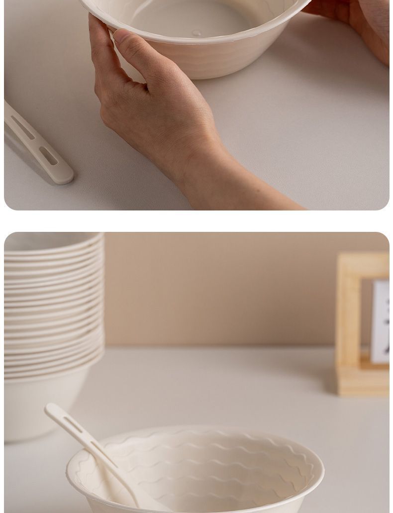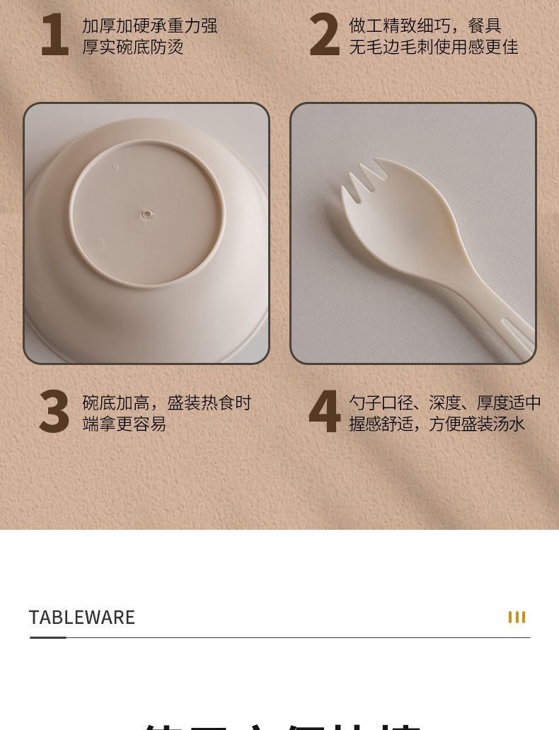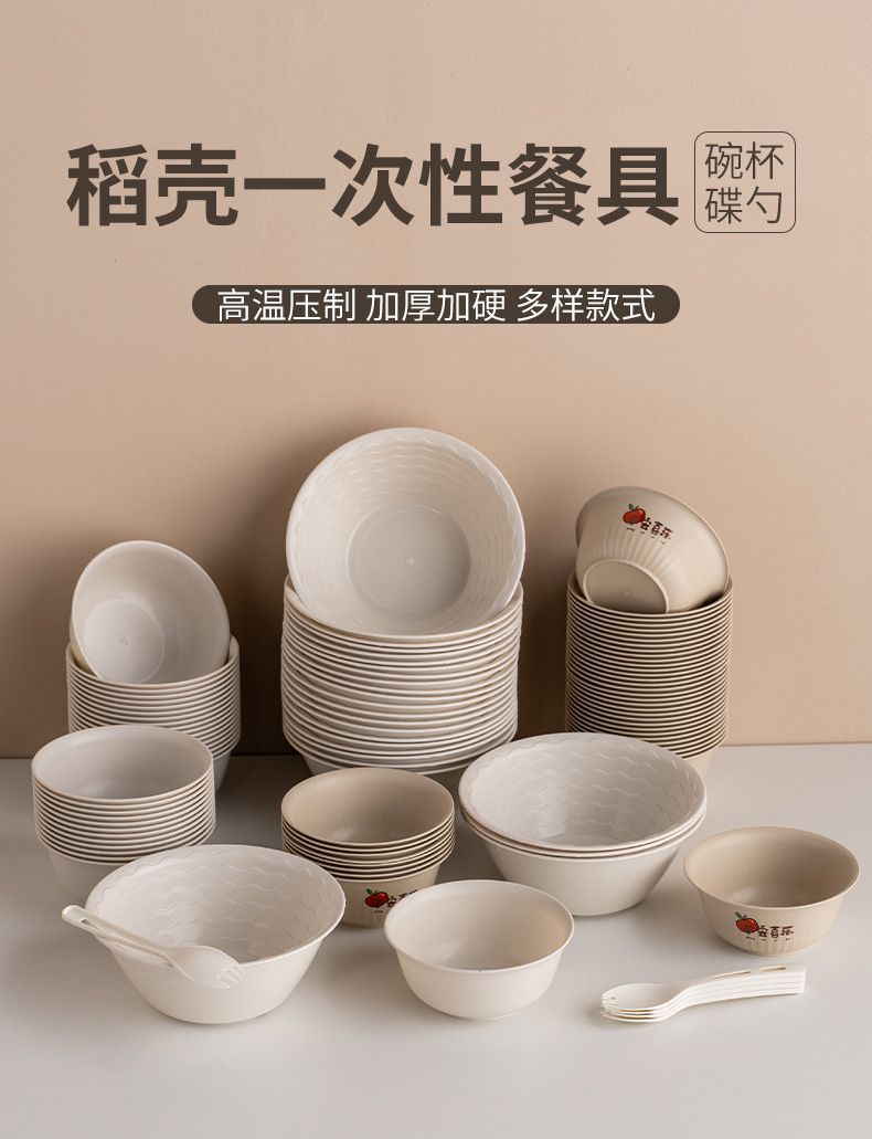 使い捨て食器、籾殻食器、ホテル・レストラン用4点セット、ご飯皿、スプーン、カップ、麺類、スープボウル、食品グレード家庭用