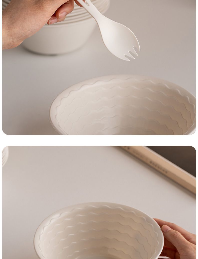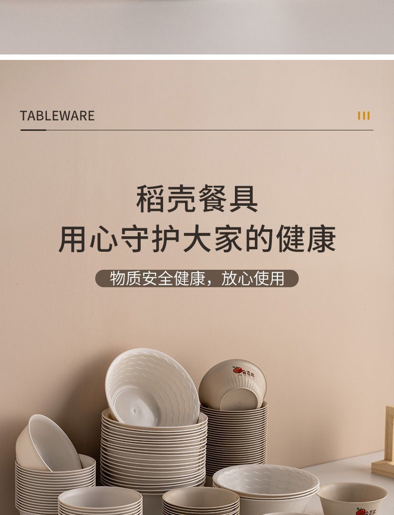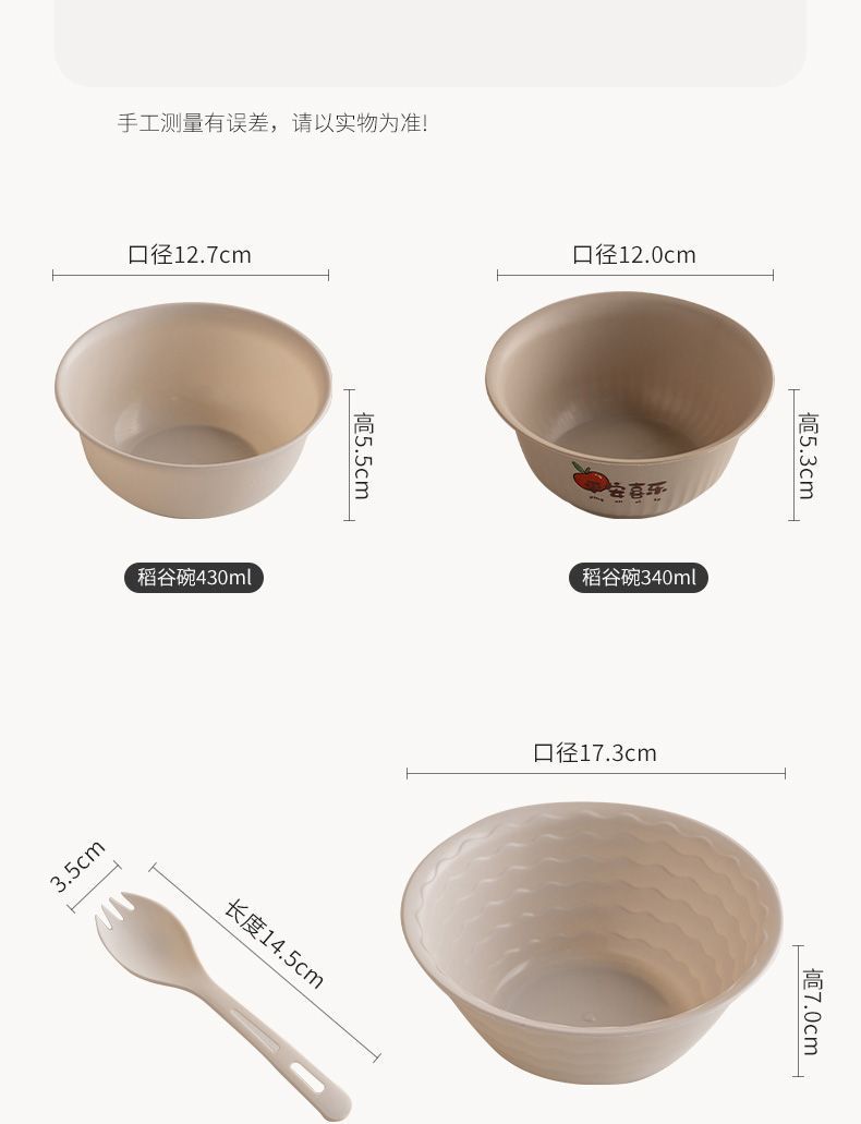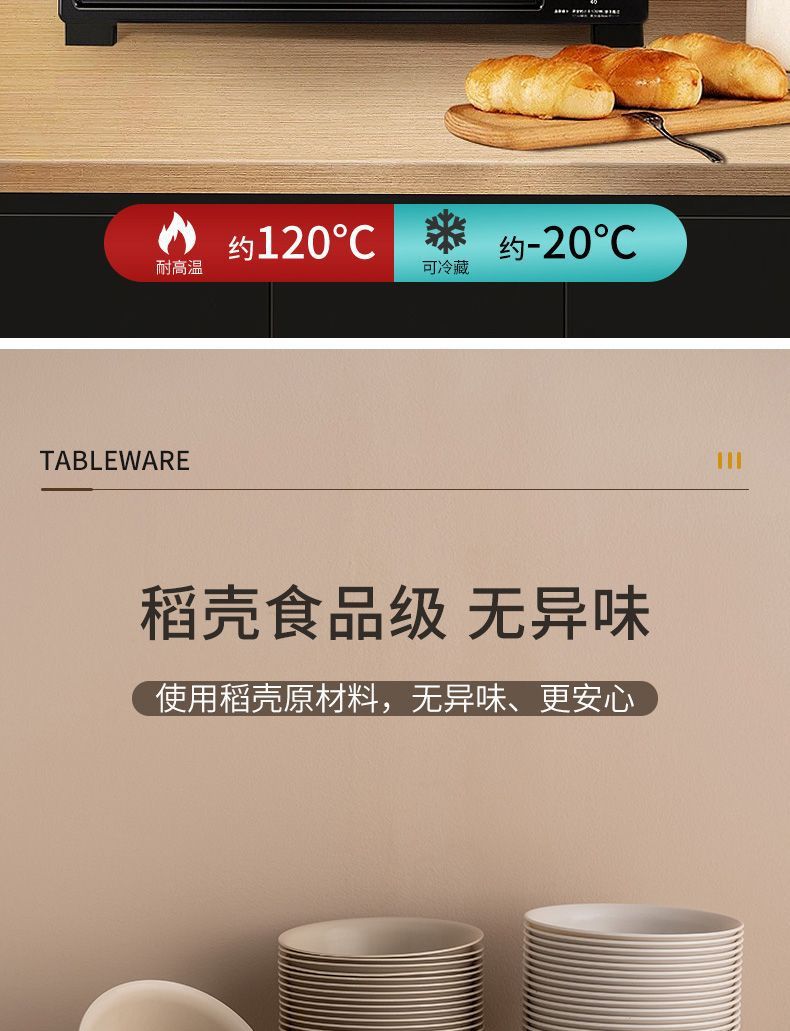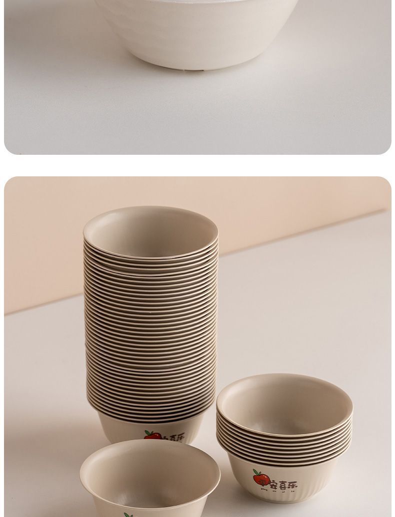 使い捨て食器、籾殻食器、ホテル・レストラン用4点セット、ご飯皿、スプーン、カップ、麺類、スープボウル、食品グレード家庭用