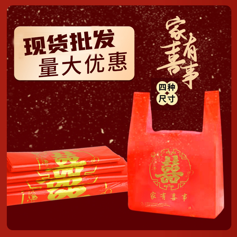 赤いビニール袋双喜手提げ袋結婚祝い満月プレゼント袋ベスト福字喜字袋卸売り